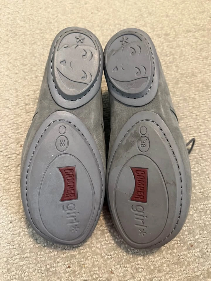 Grey nubuck size 38 eu or 7.5 us. Fantastic condition. Smoke free home.
