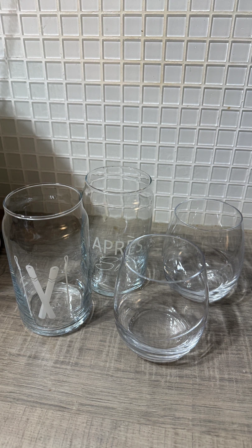 157Selling a set of four beer/wine glasses! Two are stemless wine glasses, and two are can-shaped beer glasses. Perfect for your next get together! PLEASE NOTE: Pickup in Tuscany area. Cash preferred. E-transfer to hold. Please send me a message with date/time to pickup.
