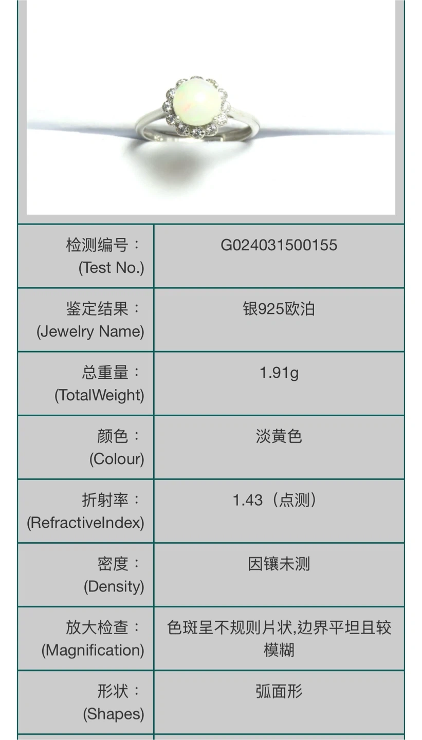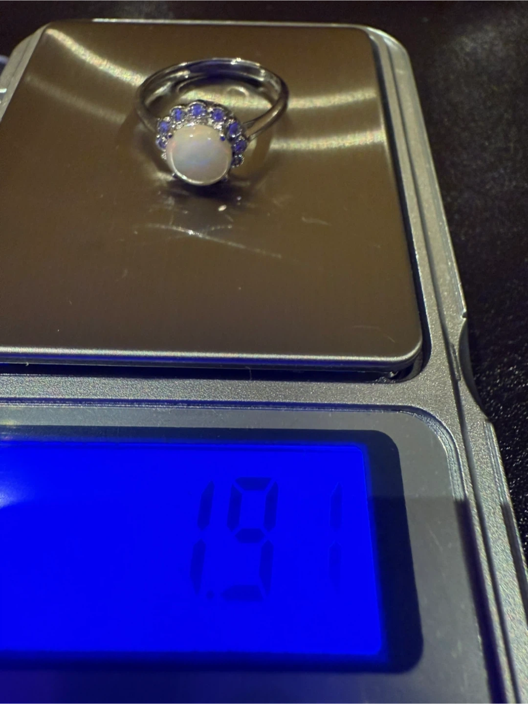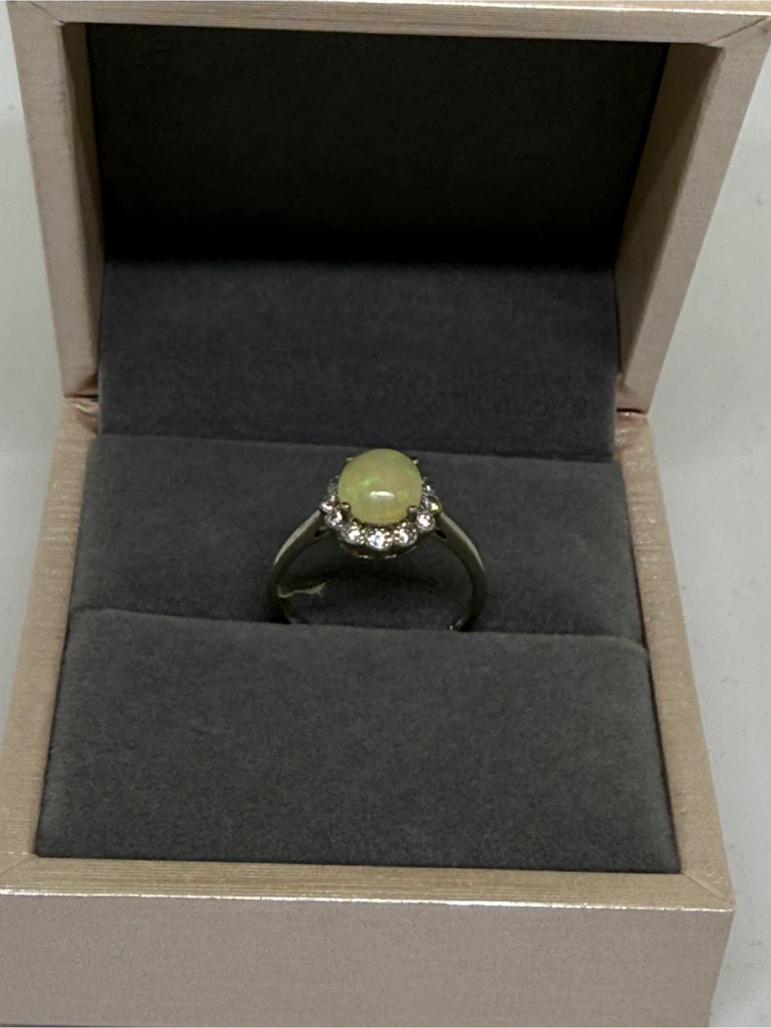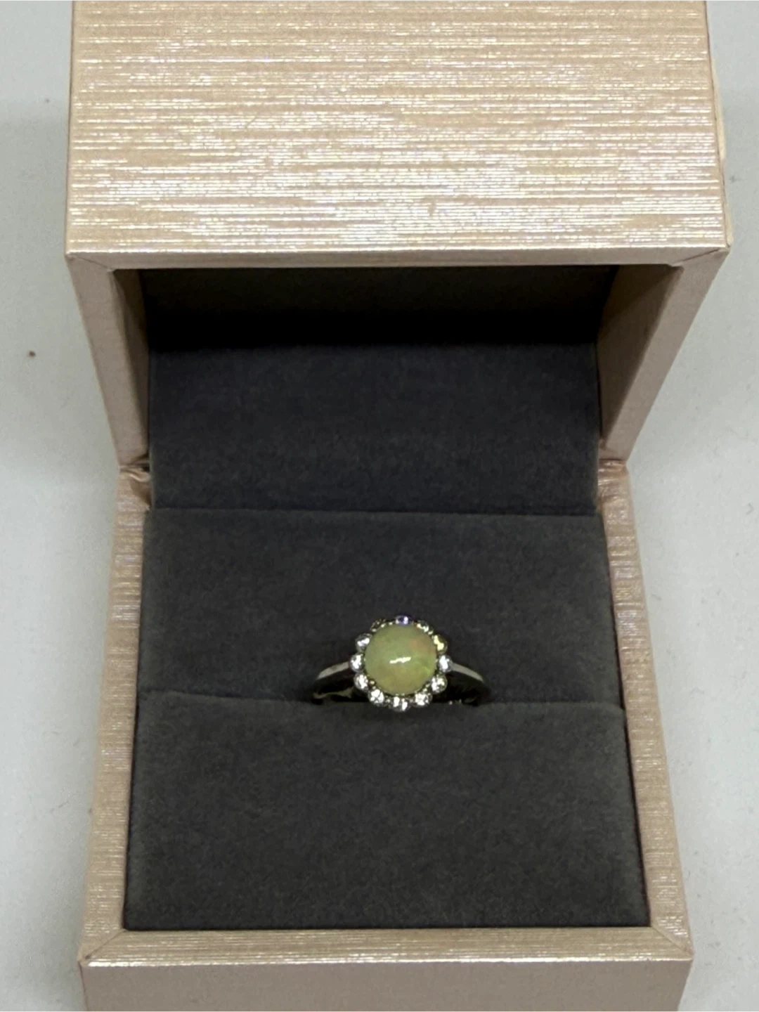 Selling a beautiful Silver S925 Opal ring surrounded with cubic zirconia. It has a light yellow colour and weighs about 1.91g. The ring size is adjustable and suitable for US size 6 to 8.