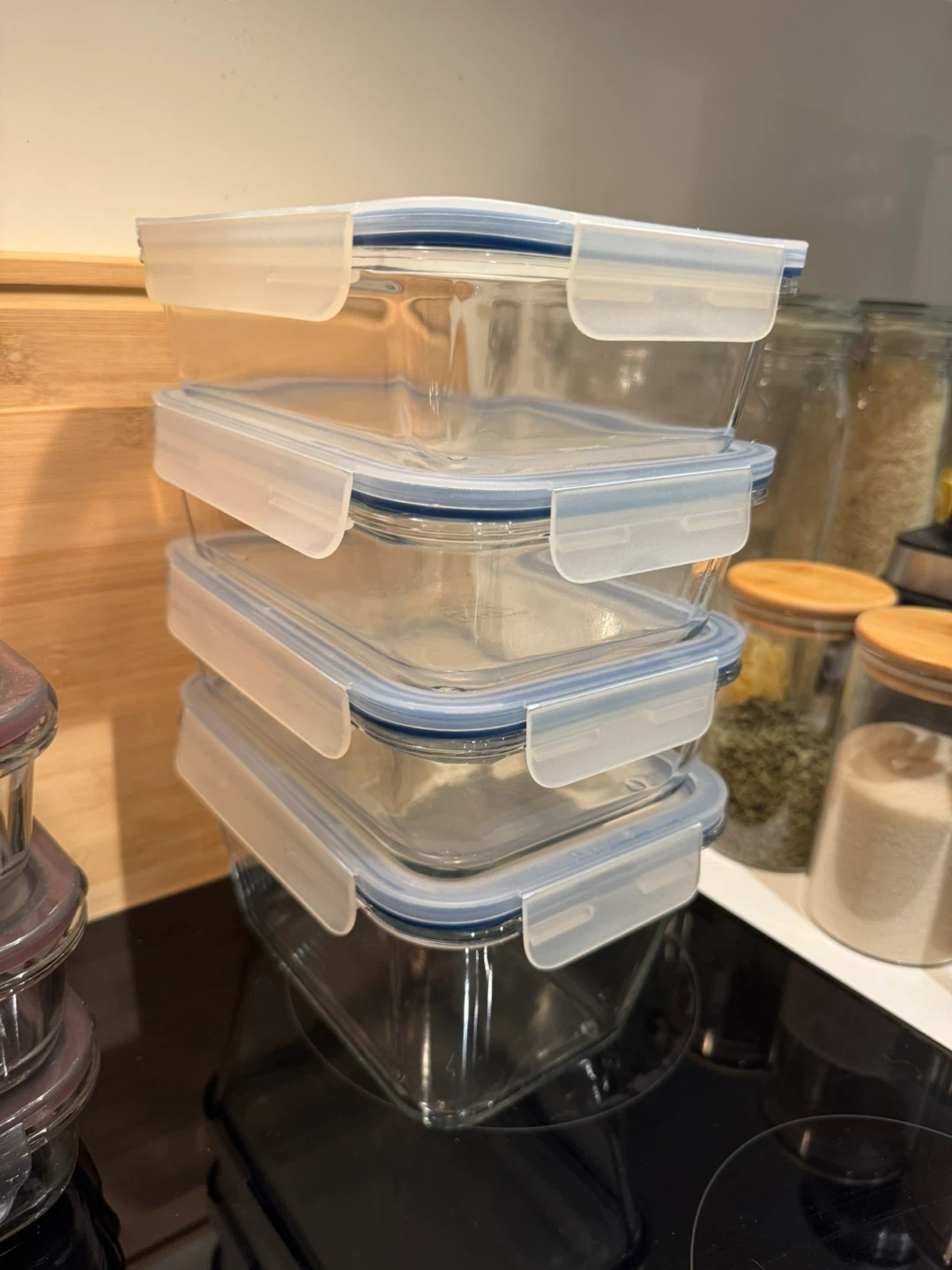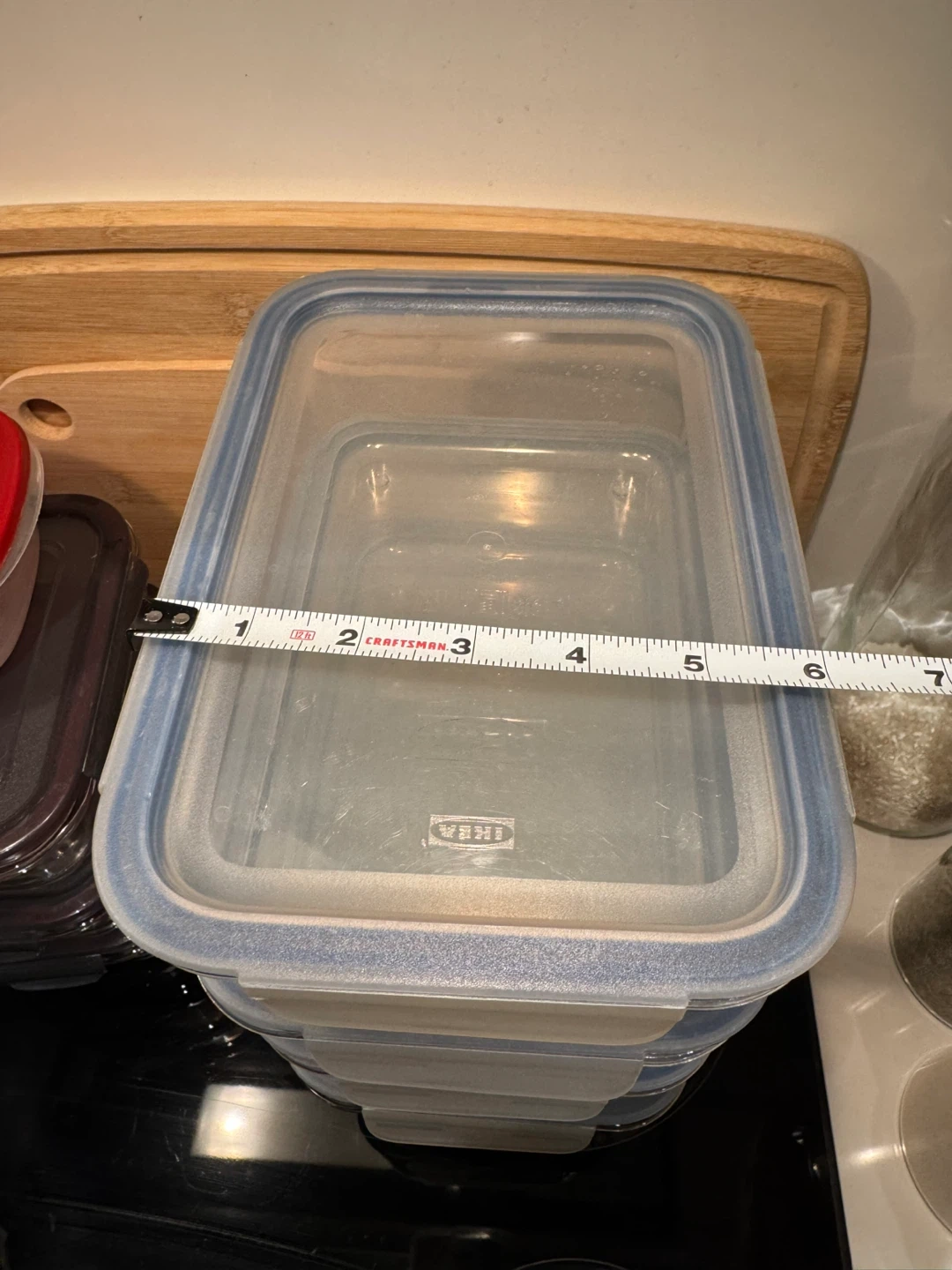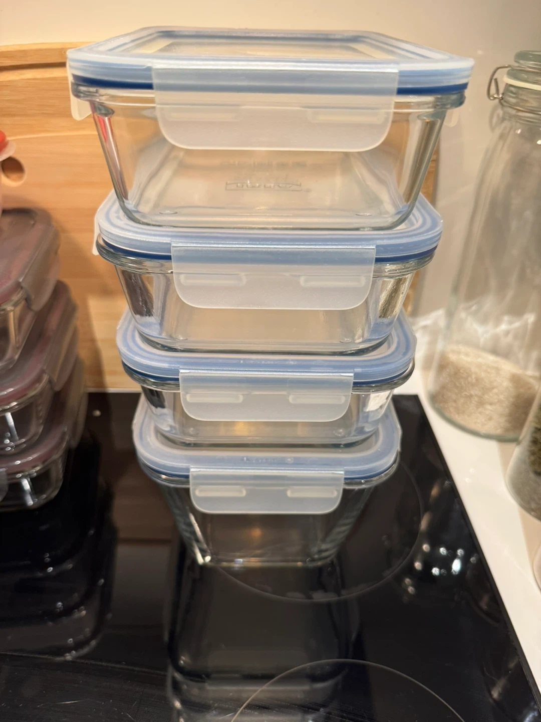 384Selling a set of four IKEA glass food containers. They're in great shape and ready to keep your leftovers fresh! Each container is approximately 8 inches tall and 6 inches wide.