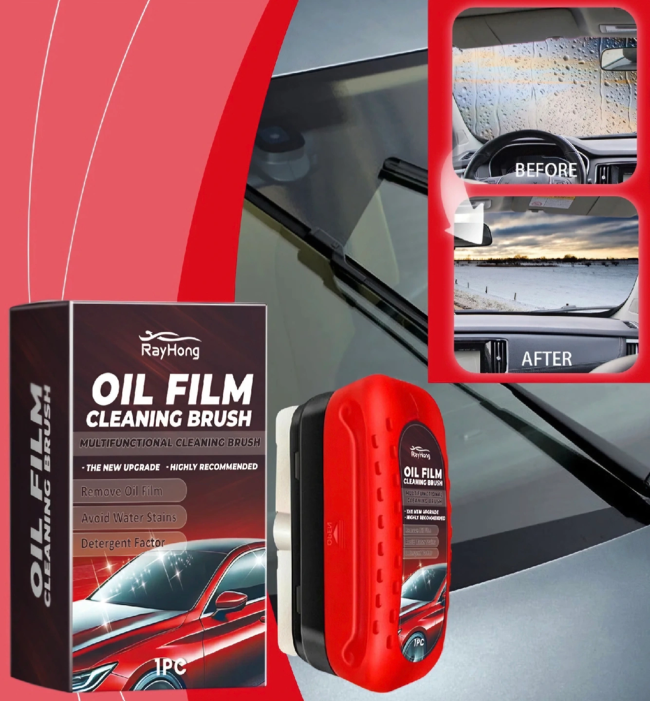 Car Windshield Oil Film Cleaner Clearance (Red), Car Glass Oil Film Cleaner, Glass Cleaning Board Automotive Oil Film Cleaning Brush Prevents Rain and Fog Cleaning Glass Brush