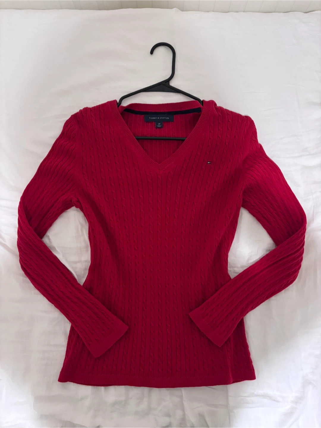 tommy hilfiger red v neck knit sweater