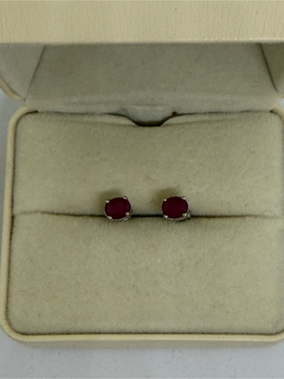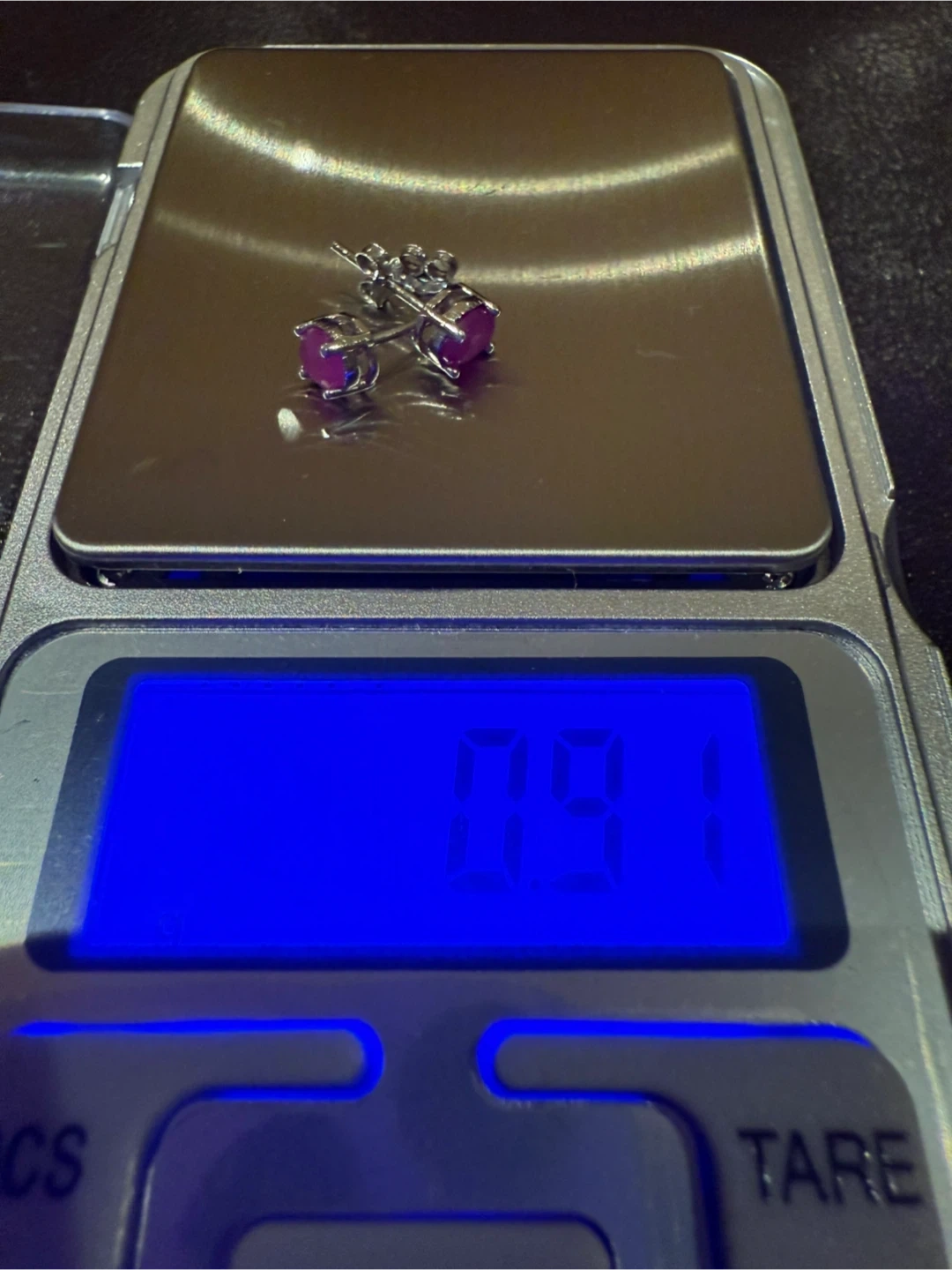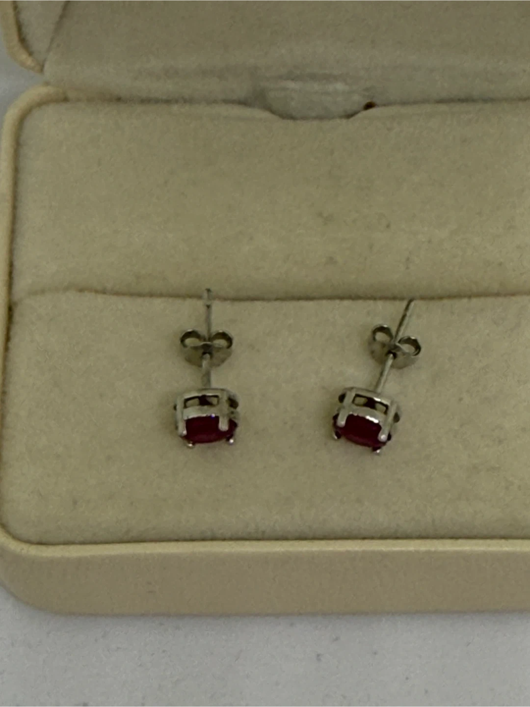 Selling a pair of beautiful ruby earrings set in 925 silver. The stones are a lovely red-pink colour and feature a facet shape. Total weight is 0.91g. They come in a box!