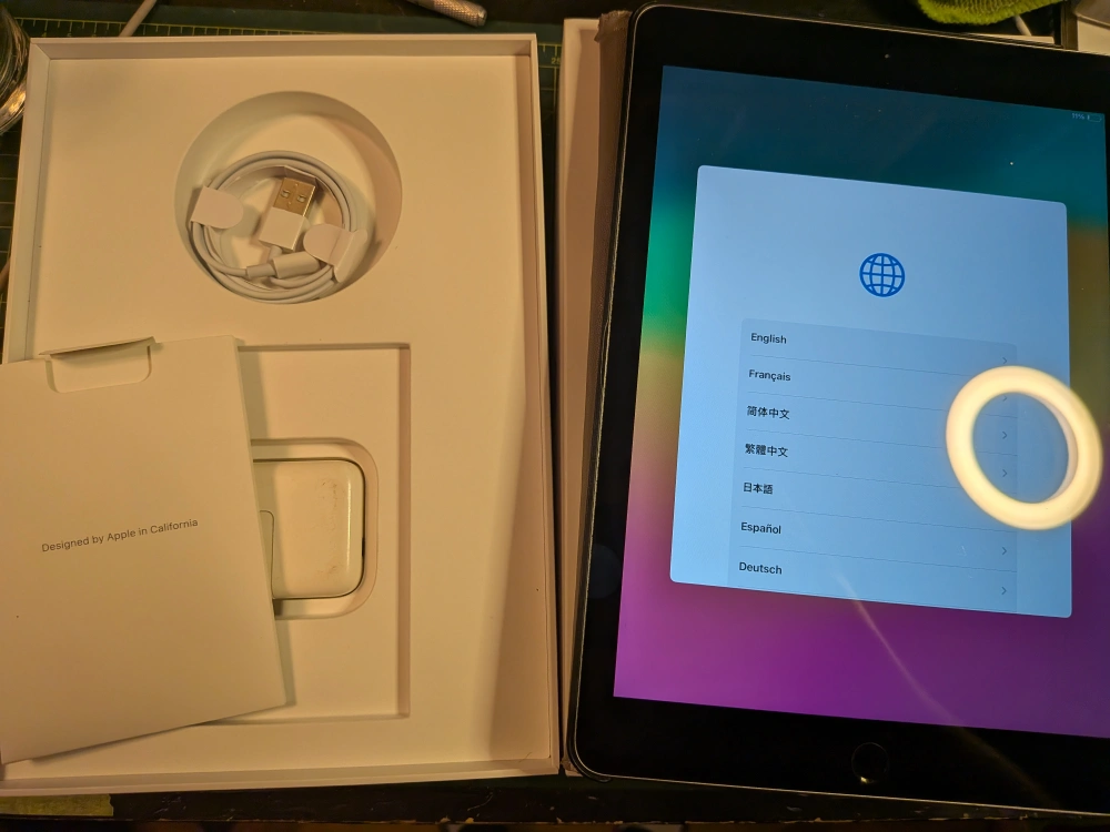This has been well cared for and always kept in the leather case (included). Wifey used it for digital art until we got a larger model. No damage. Comes with the original box, wall charger, new charging cord, and a very nice leather case/stand.