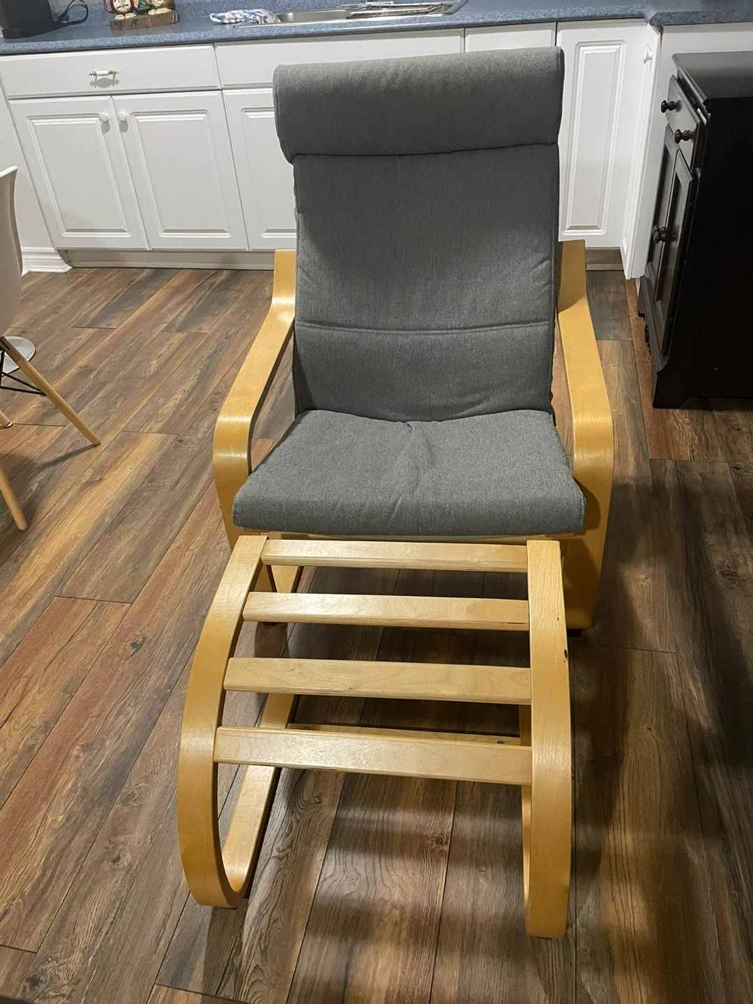 Selling a comfy IKEA POÄNG armchair in birch veneer with a gray cushion! It's in great shape and ready for a new home.