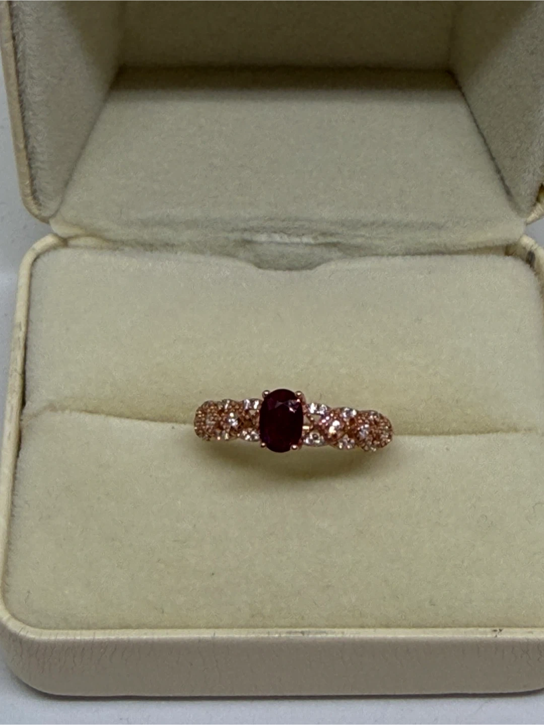Selling a beautiful S925 silver ring with a natural ruby gemstone in rose gold silver setting! The ring features an oval shape ruby and weighs approximately 1.52g. It comes in a lovely box, perfect for gifting or safekeeping! The size is adjustable and suitable for US size 6 to 8.