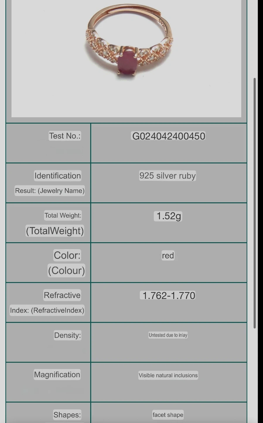 Selling a beautiful S925 silver ring with a natural ruby gemstone in rose gold silver setting! The ring features an oval shape ruby and weighs approximately 1.52g. It comes in a lovely box, perfect for gifting or safekeeping! The size is adjustable and suitable for US size 6 to 8.