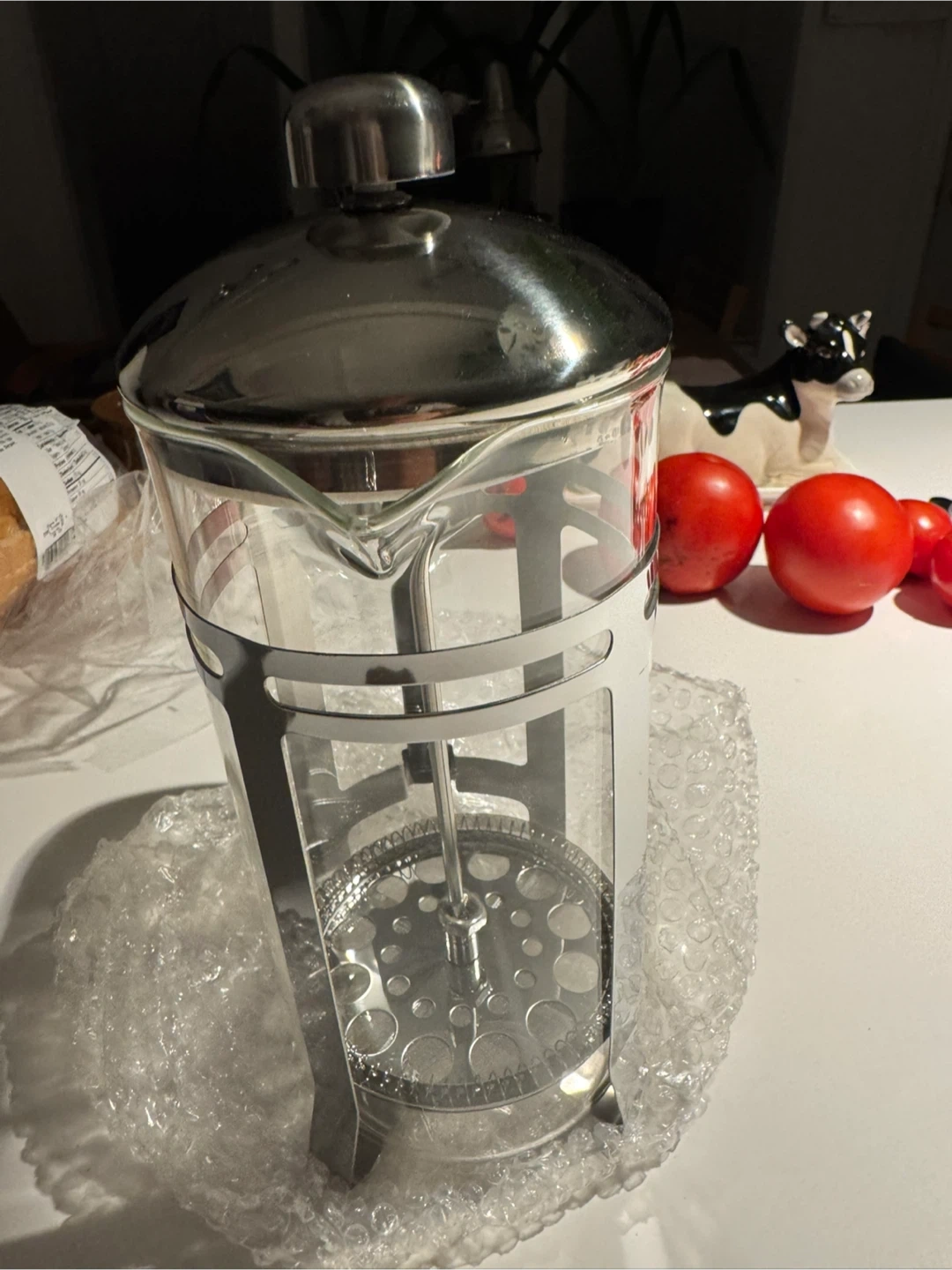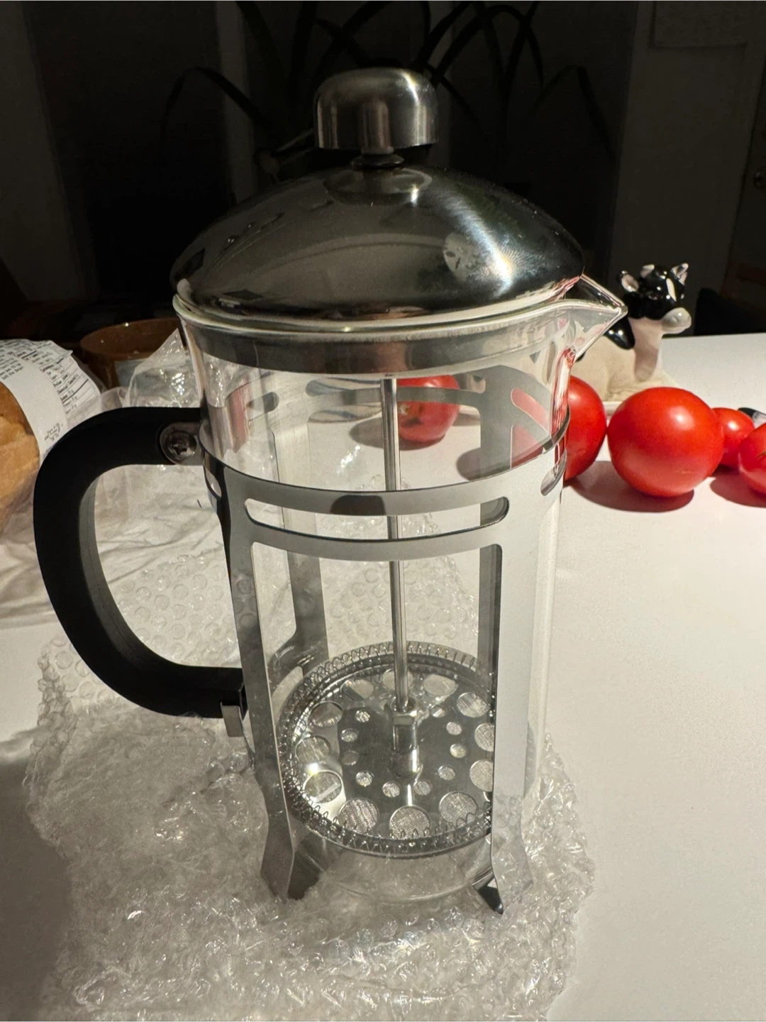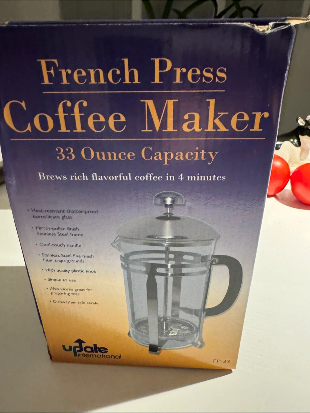 This French press is the ideal system to make delicious flavorful coffee quickly and easily. With the ability to brew as little as one cup at a time, the French press offers convenience without compromise to taste and quality. It features heat-resistant shatterproof borosilicate glass and a mirror-polish finish stainless steel frame. It also has a cool-touch handle and a high-quality plastic knob.