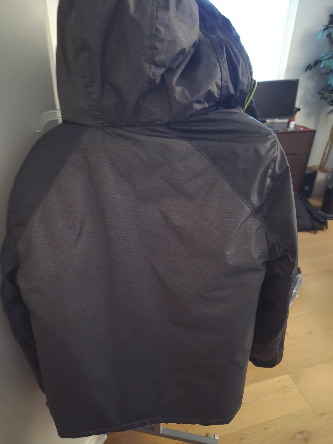 53boys' RÅBLÅ softshell jacket in size 12 or fit adult S , Features a hood and a comfortable fit. It has a black and grey colour scheme with lime green accents.It's NEW, freece layer can wear separatly.