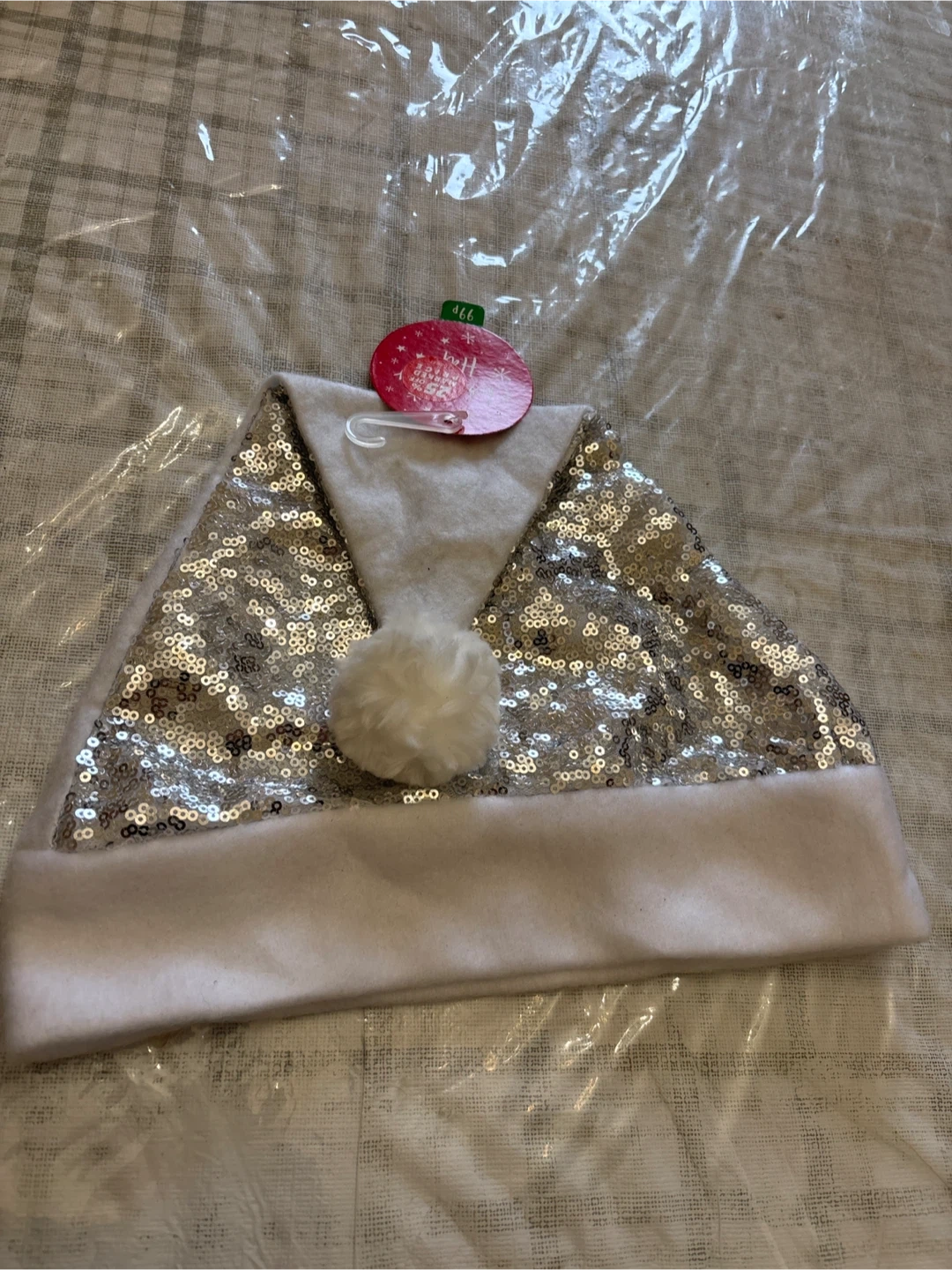 Add some sparkle to your holiday season with this fun silver sequin Santa hat! It's in great condition and ready to spread some Christmas cheer