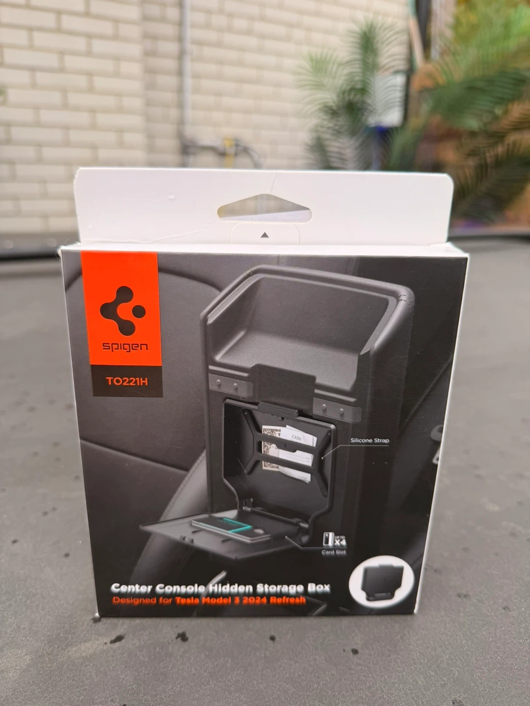 Selling a Spigen Center Console Hidden Storage Box designed for the Tesla Model 3 2024 Refresh (Highland). It's a great way to add some discreet storage to your car's interior.