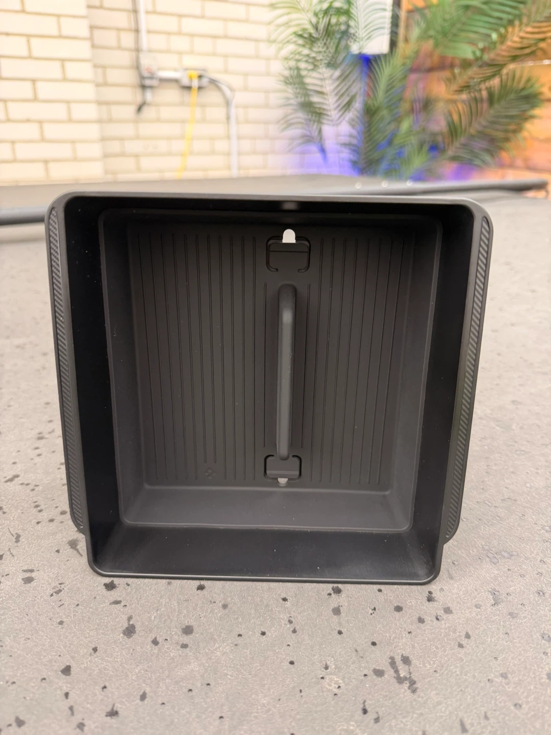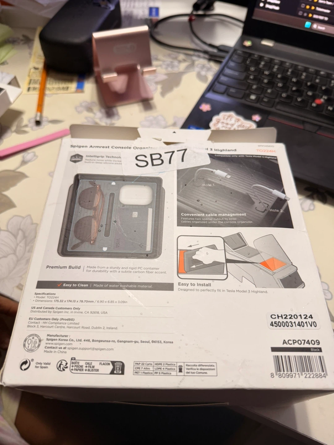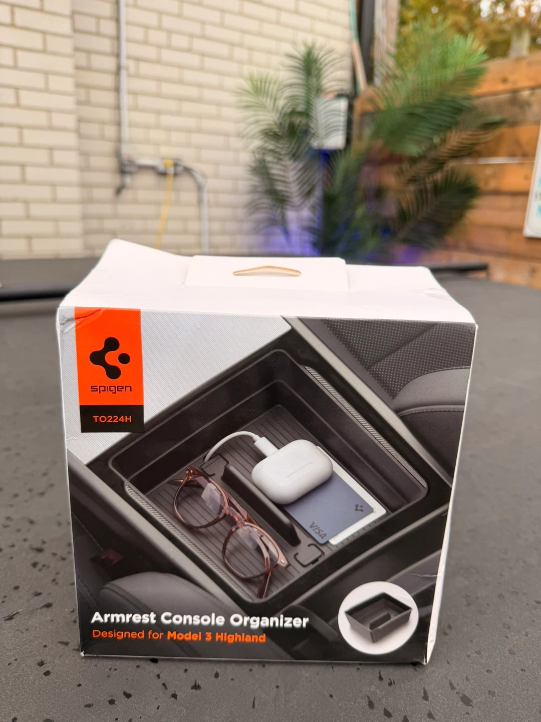 Keep your Tesla Model 3 Highland organized with this Spigen Armrest Console Organizer! It's designed to fit perfectly and offers convenient cable management. Made from sturdy and rigid PC container for durability with a subtle carbon fiber accent. Easy to clean and made of water washable material. Dimensions: 175.32 x 194.13 x 78.70mm / 6.90 x 6.85 x 3.09in. Comes with the original box