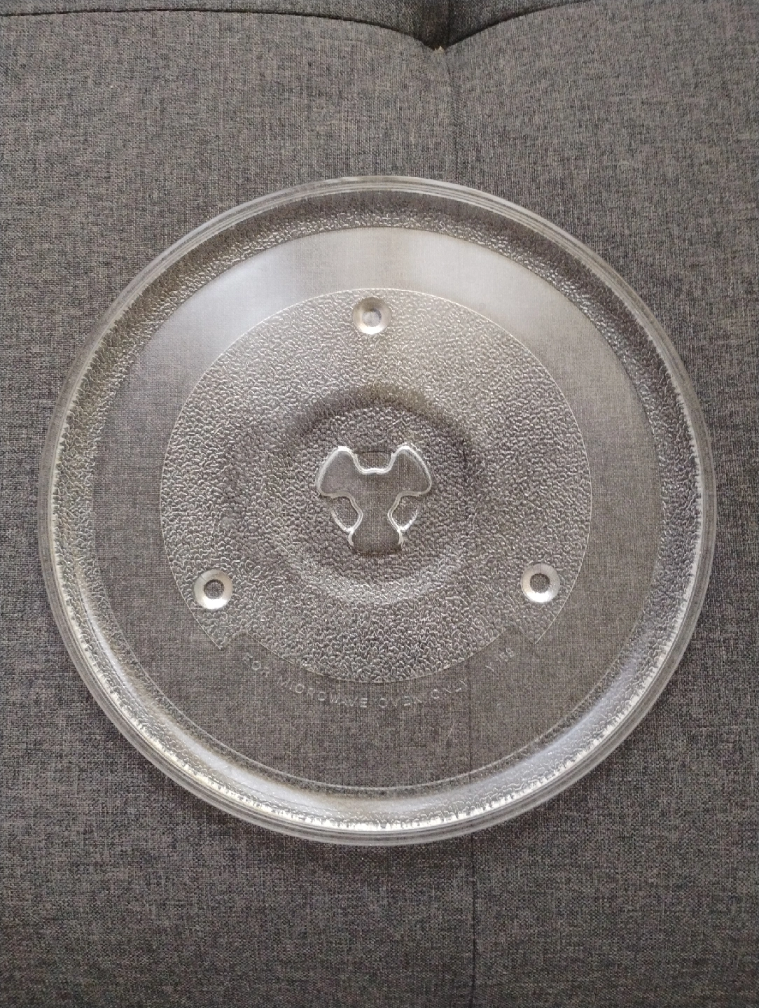 Selling a glass turntable plate for a microwave oven. It's in great shape and ready to help you heat up your meals! It says 'FOR MICROWAVE OVEN ONLY' on the plate
