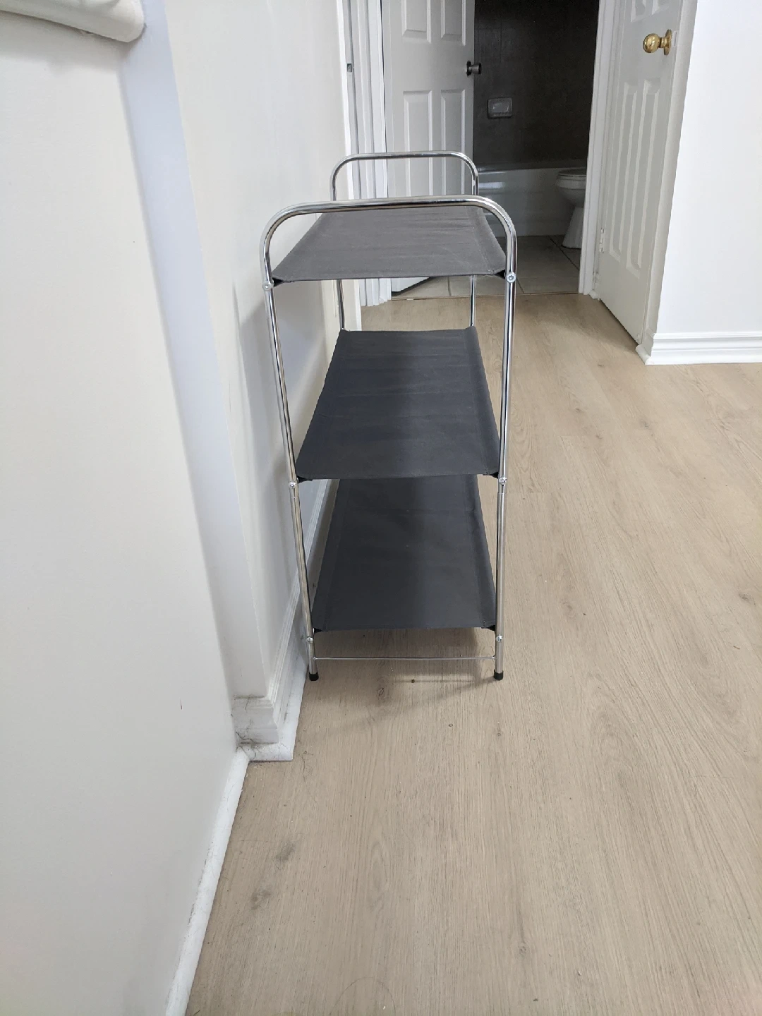 1000+Selling a handy 3-tier shelf! It features a chrome frame with black shelves, perfect for adding some extra storage space to your bathroom, closet, or any other room in the house. The size is: 29"x12"x28"(height). Pick up at 195 Merton Street Toronto or pick up at subway station Davisvill. And I can deliver it to your house but you need to pay me another $3. Thanks.