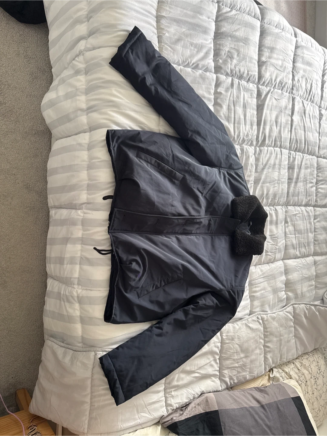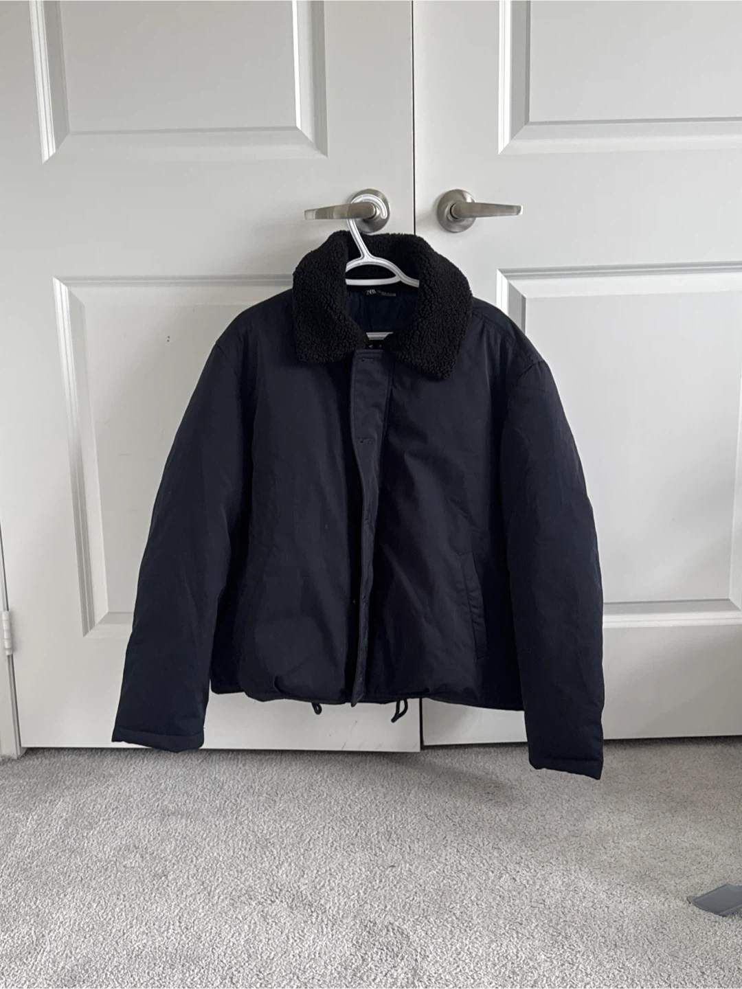 Looking to pass along this Zara jacket with a faux shearling collar. It's a stylish piece that's in great shape and ready for a new home! The jacket is black and features a button-up front with a cozy faux shearling collar