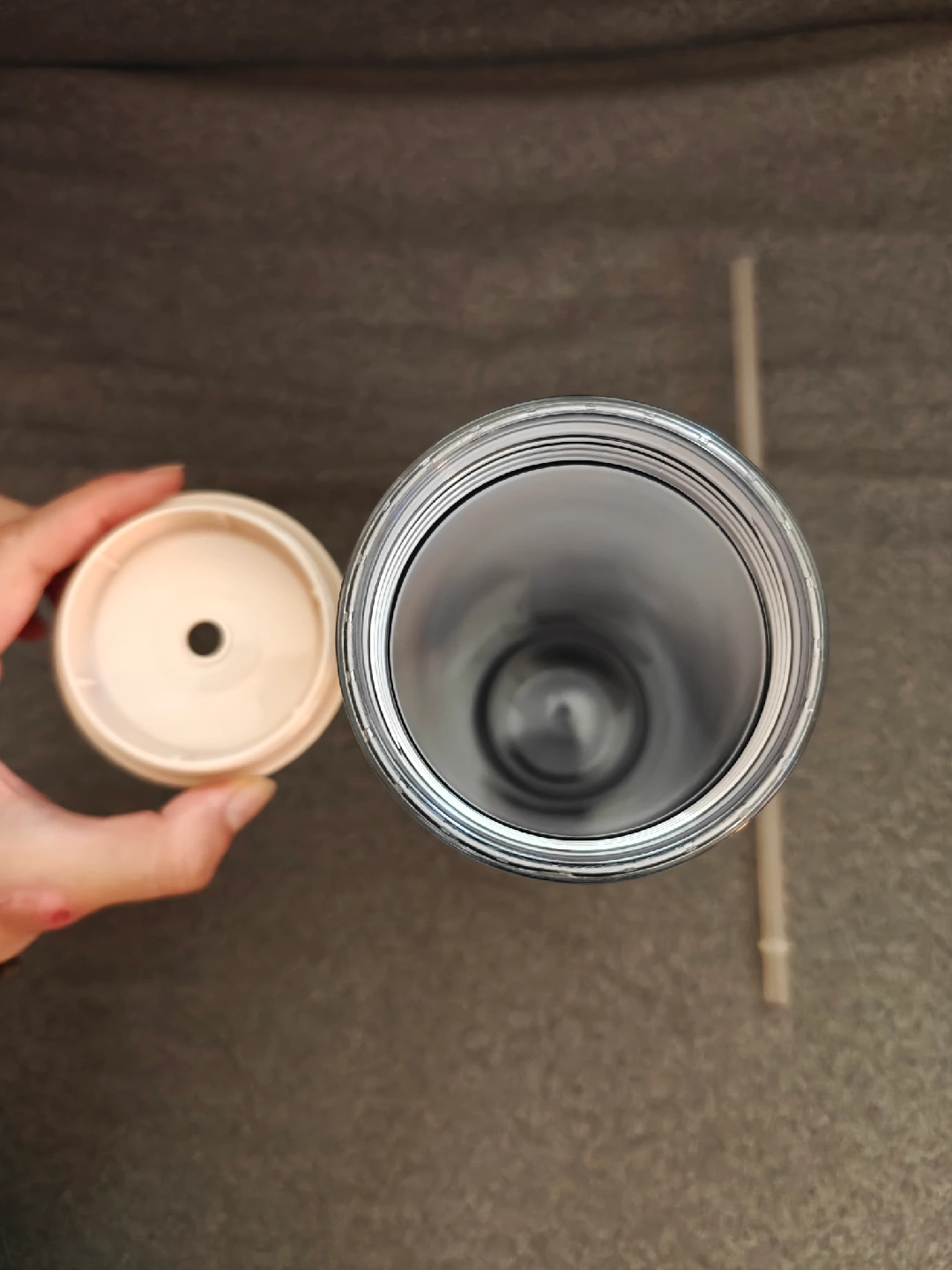 Selling a cute personalized tumbler in pink and white! It comes with a straw and is perfect for keeping your drinks cold on the go. It features a leafy pattern and a gold initial 'C'.