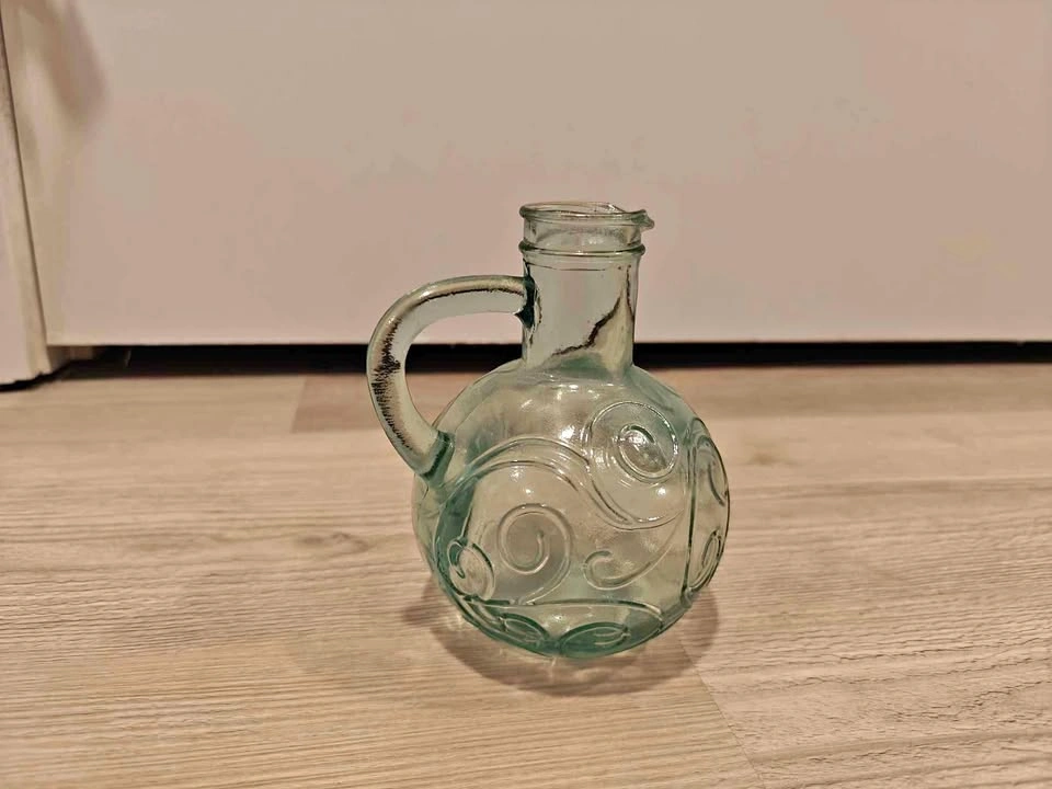 Beautiful blue Swirl Glass Mini Pitcher with Handle, lovely to use as a condiment container or a vase.