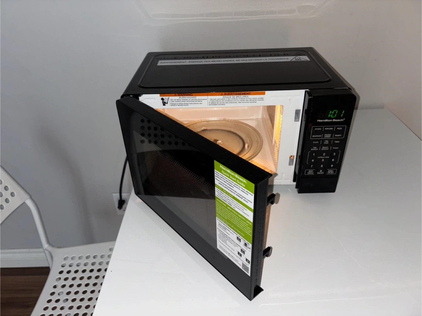 Selling a Hamilton Beach microwave oven in black. It's in great condition and ready for a new home! Perfect for quick meals and snacks, this microwave is a convenient addition to any kitchen