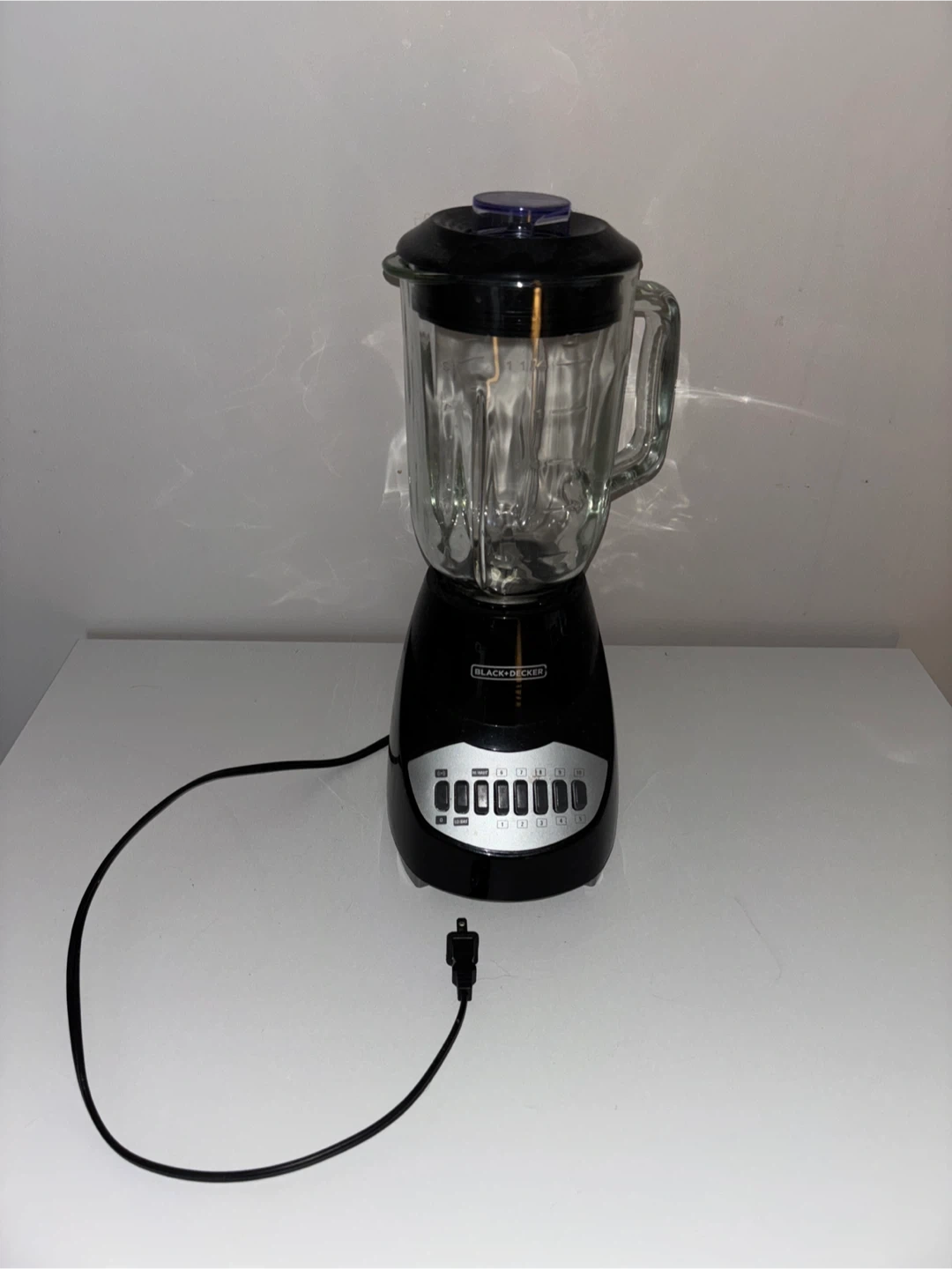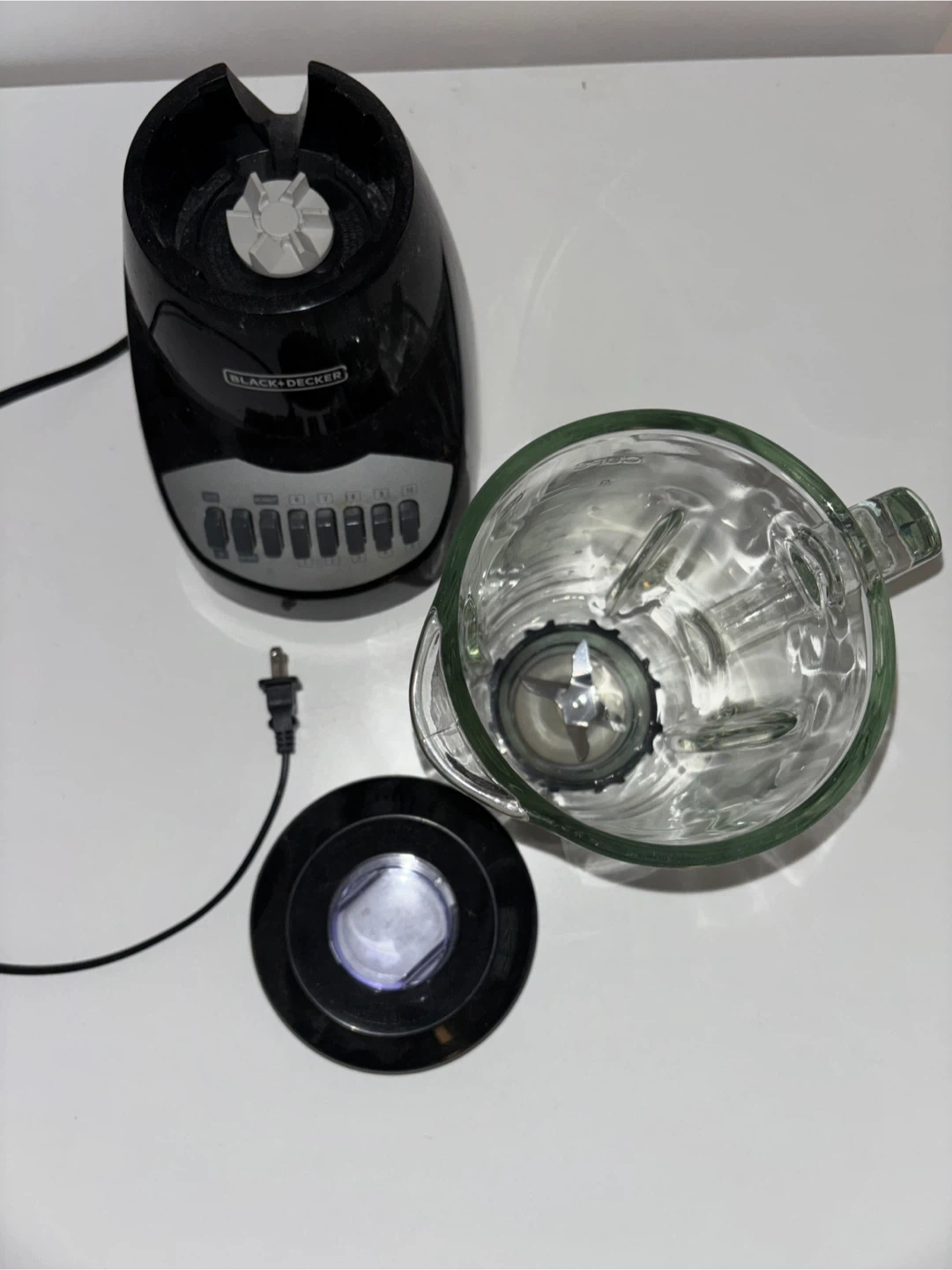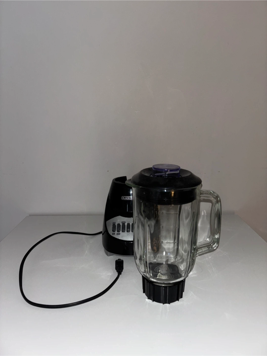 Selling a Black+Decker blender in good condition. It's black and clear, and comes with all the components shown in the pictures. Perfect for making smoothies or other blended drinks!