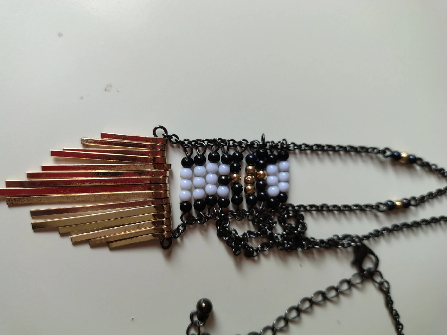 Funky necklace with gold and black accents. It's in great condition and would be a great addition to any outfit!