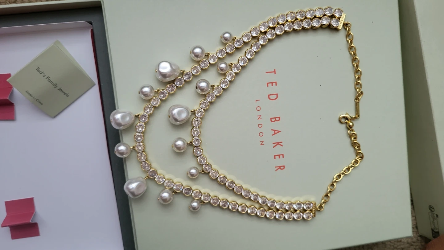 Selling a beautiful Ted Baker London necklace. It's brand new and comes with the original box! The necklace features a gold-tone chain with crystal and pearl embellishments. A lovely piece to add to your collection!