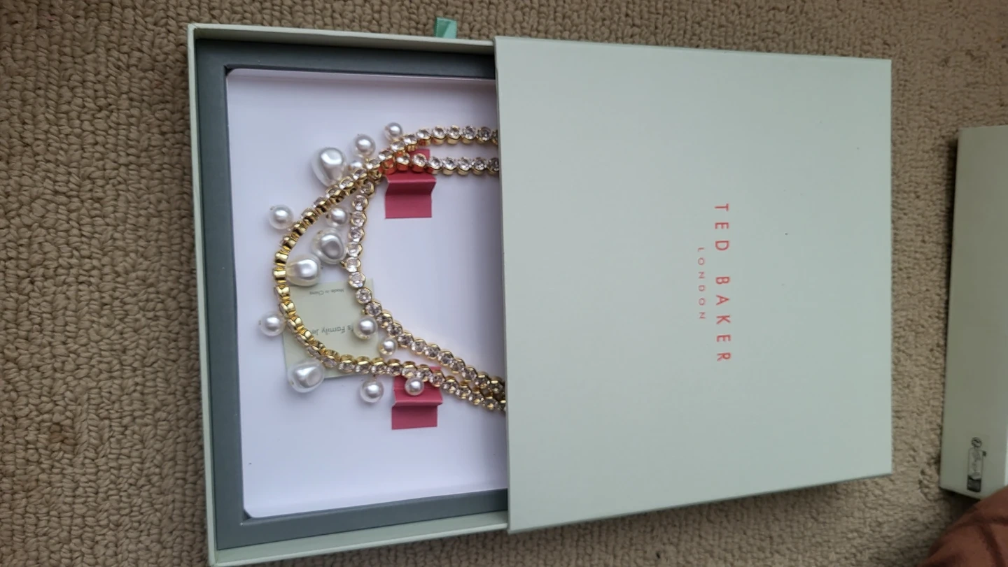 Selling a beautiful Ted Baker London necklace. It's brand new and comes with the original box! The necklace features a gold-tone chain with crystal and pearl embellishments. A lovely piece to add to your collection!
