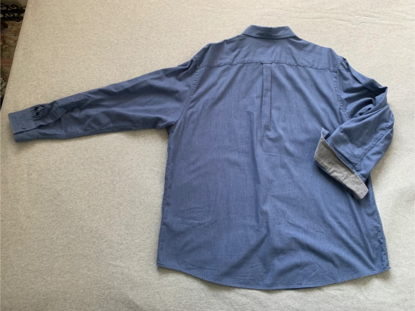 Excellent condition made of 100% cotton Shown with cuffs rolled or down. Nice grey detail on inside. Fabric is superb.