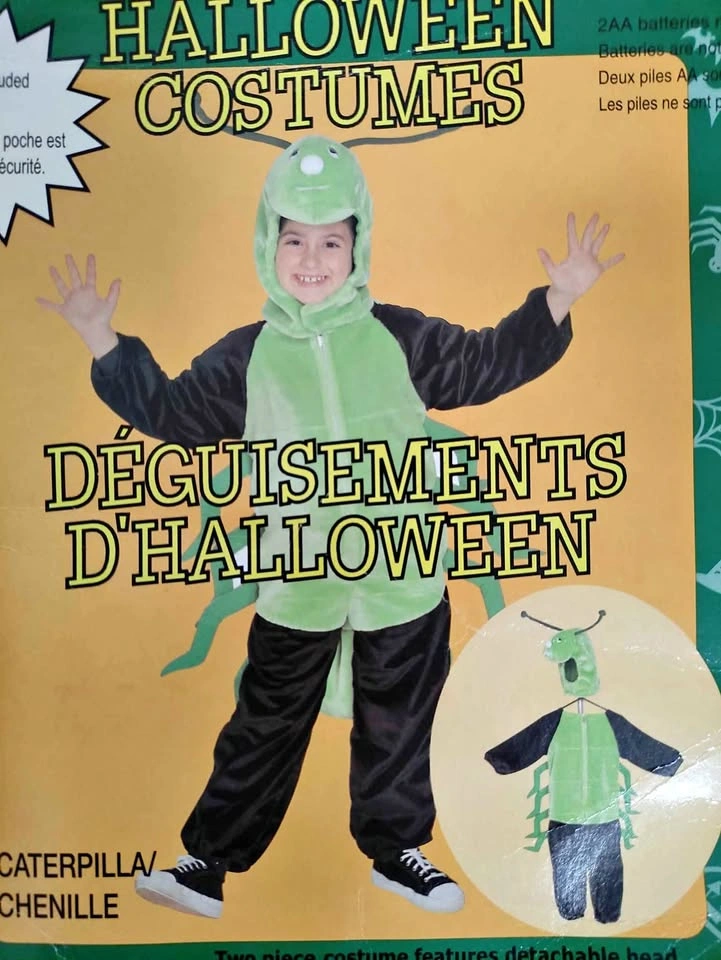 Adorable Halloween Costume featuring a colorful caterpillar. Complete with head cover. Just wear black pants underneath to complete the outfit. Used once indoors. Approximately for age 5 - 8. Please refer to photos for size measurements. If the ad is up, it's available. Cash transaction only.