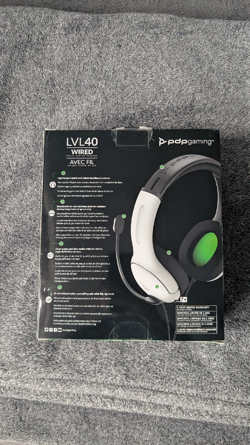 Selling a PDP Gaming LVL40 wired stereo gaming headset for Xbox. It has 40mm high-definition drivers for great sound. Designed for Xbox. box is damaged otherwise it's sealed