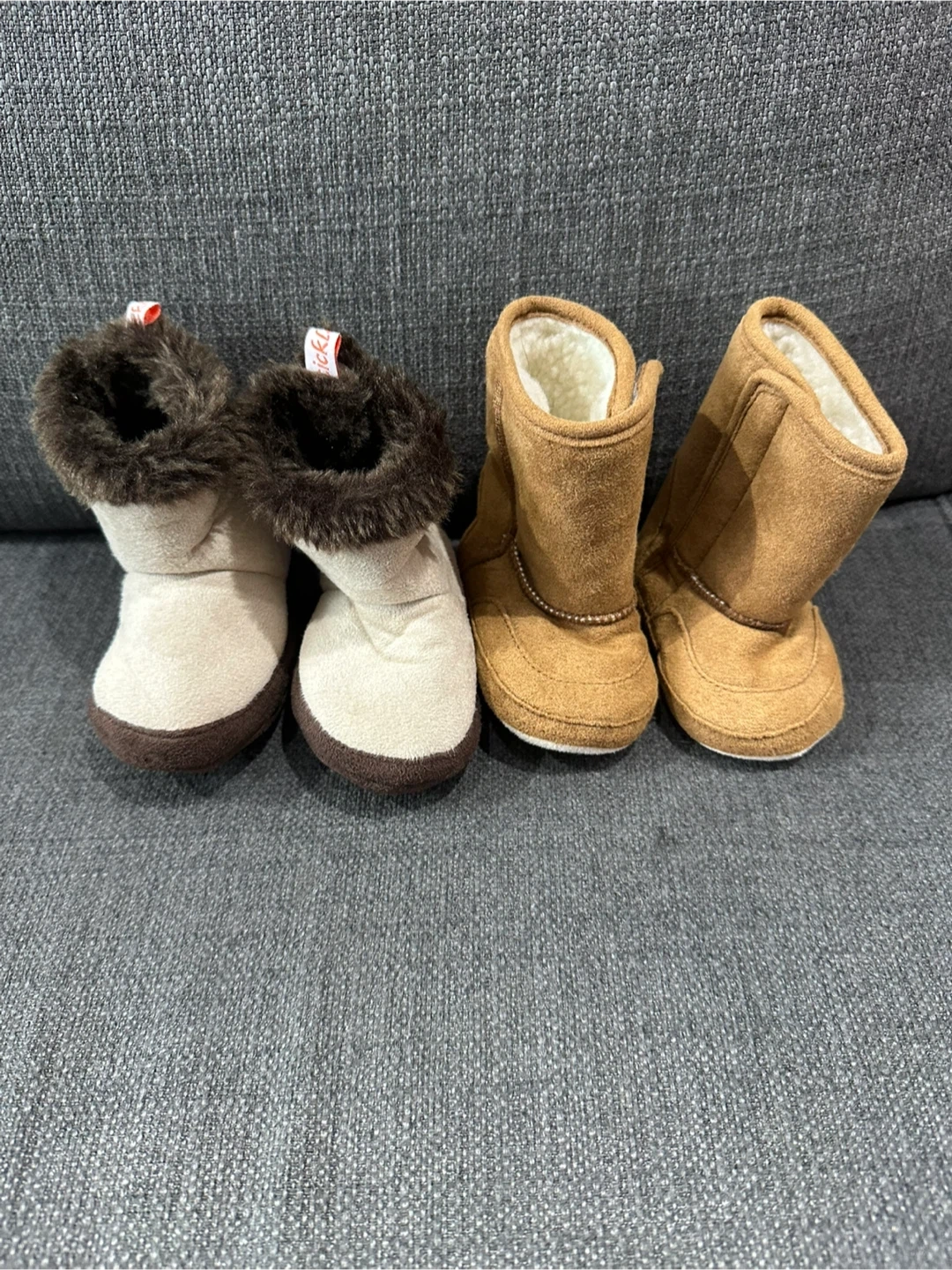 14These adorable baby boots are in great condition and ready for a new home! They're perfect for keeping your little one's feet warm and cozy. Size 3-6 months.