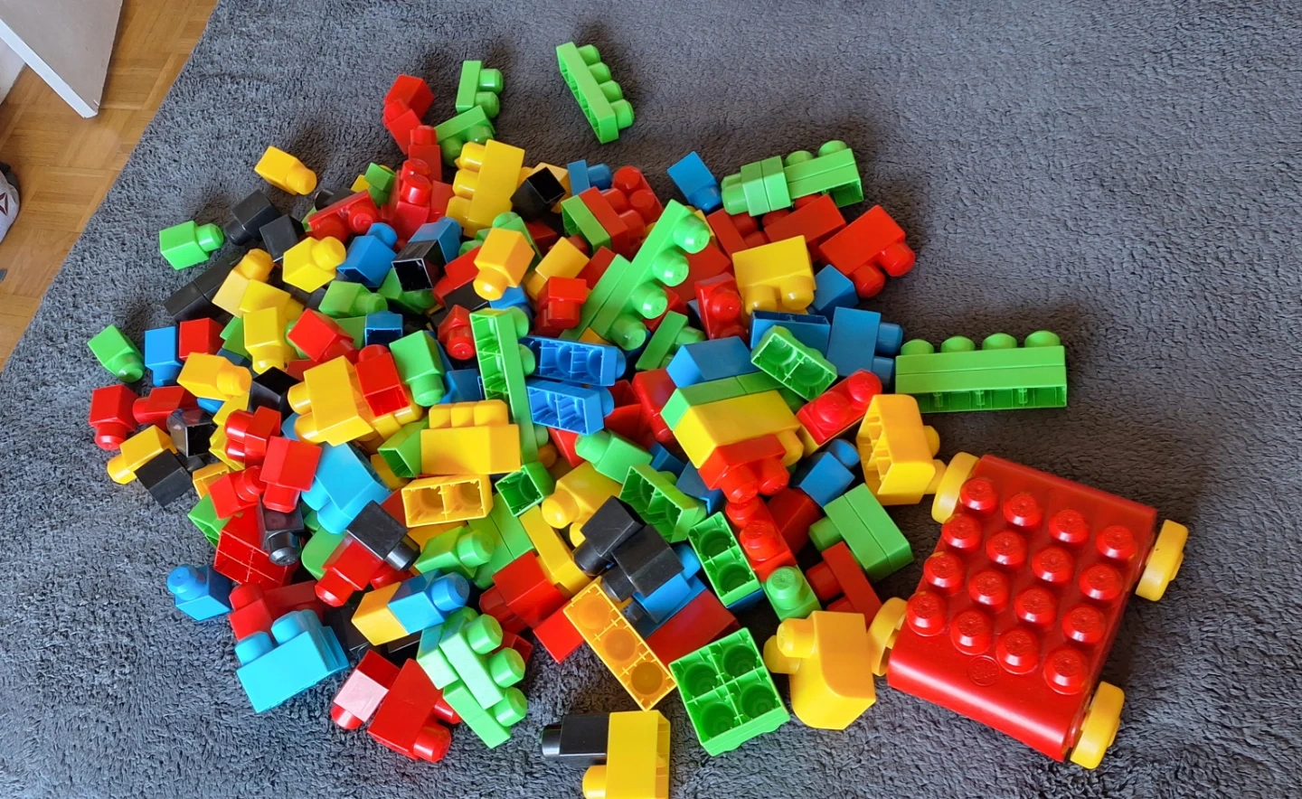 A collection of colourful building blocks, perfect for creative play! They come in assorted colours like red, yellow, green, and blue. Great for kids to explore their imagination and build fun structures.