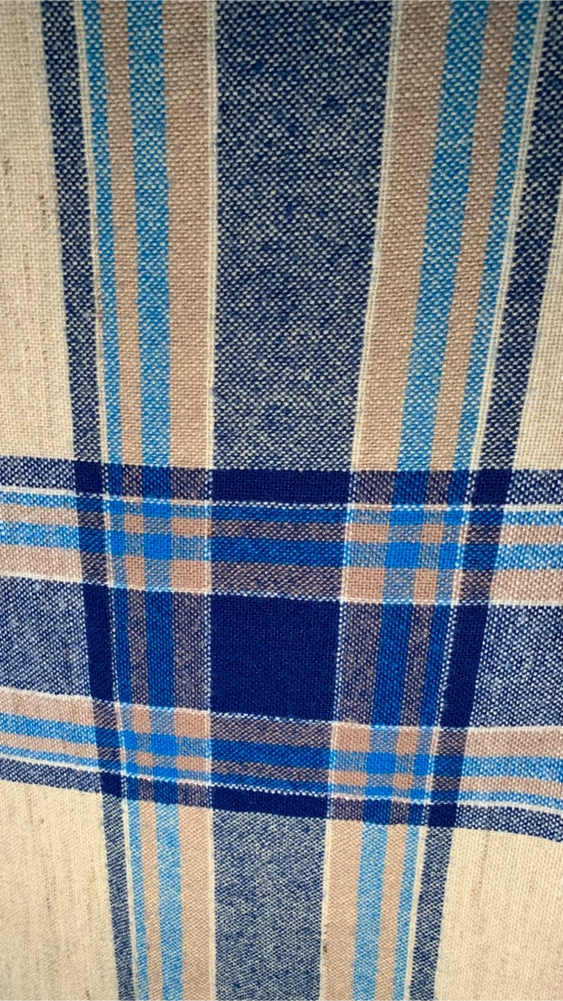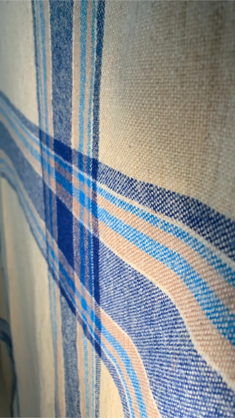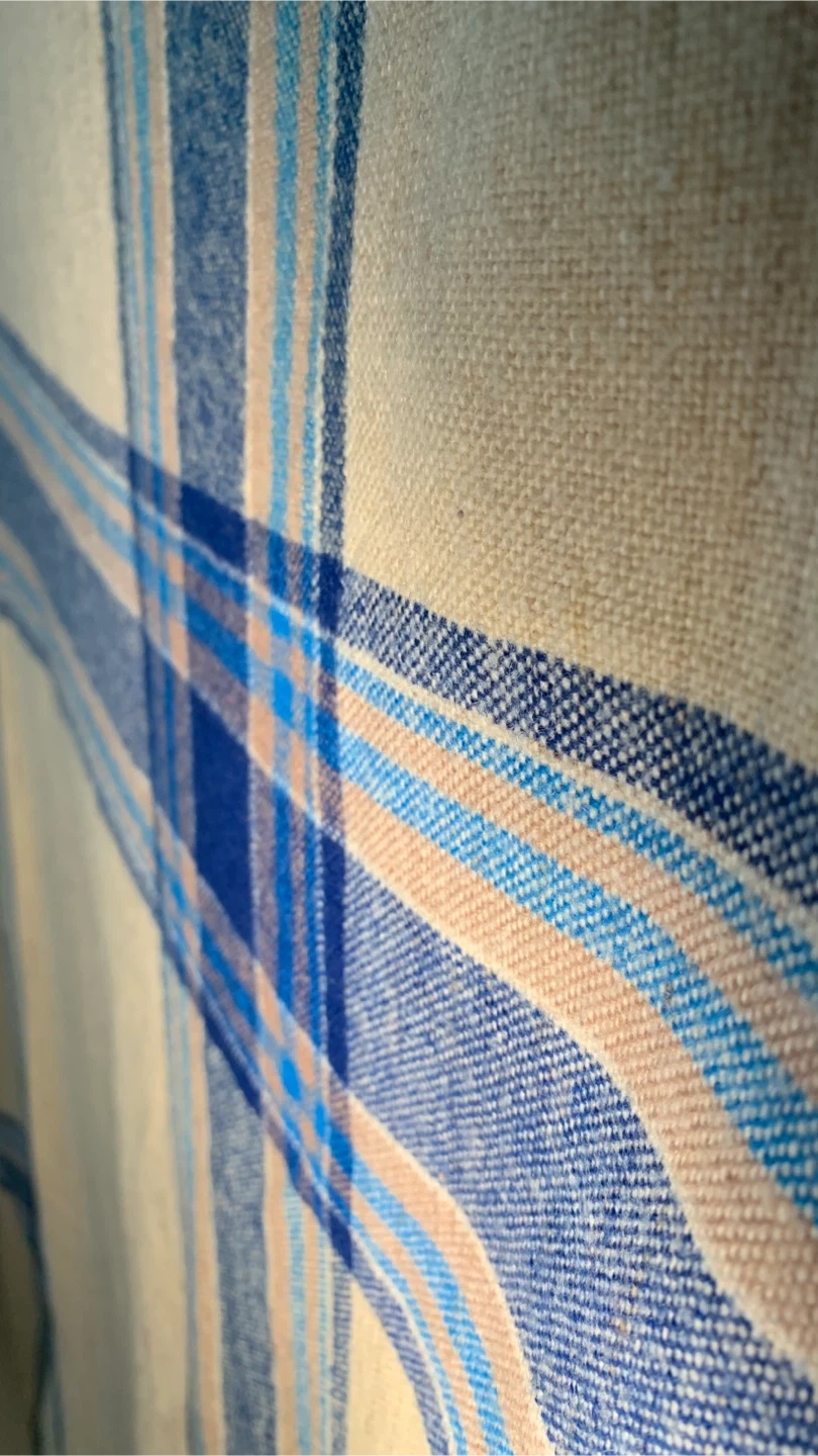 1000+Vintage French tablecloth handcrafted with 100% pure Wool. It is in a brand new condition! Beautifully adding a touch of charm to your dining space! The pattern features a classic French blue and beige pattern design. Vibrant and unique looking this piece is very pleasant to the eye and touch. Real treasure for collectors. 67"x 48"