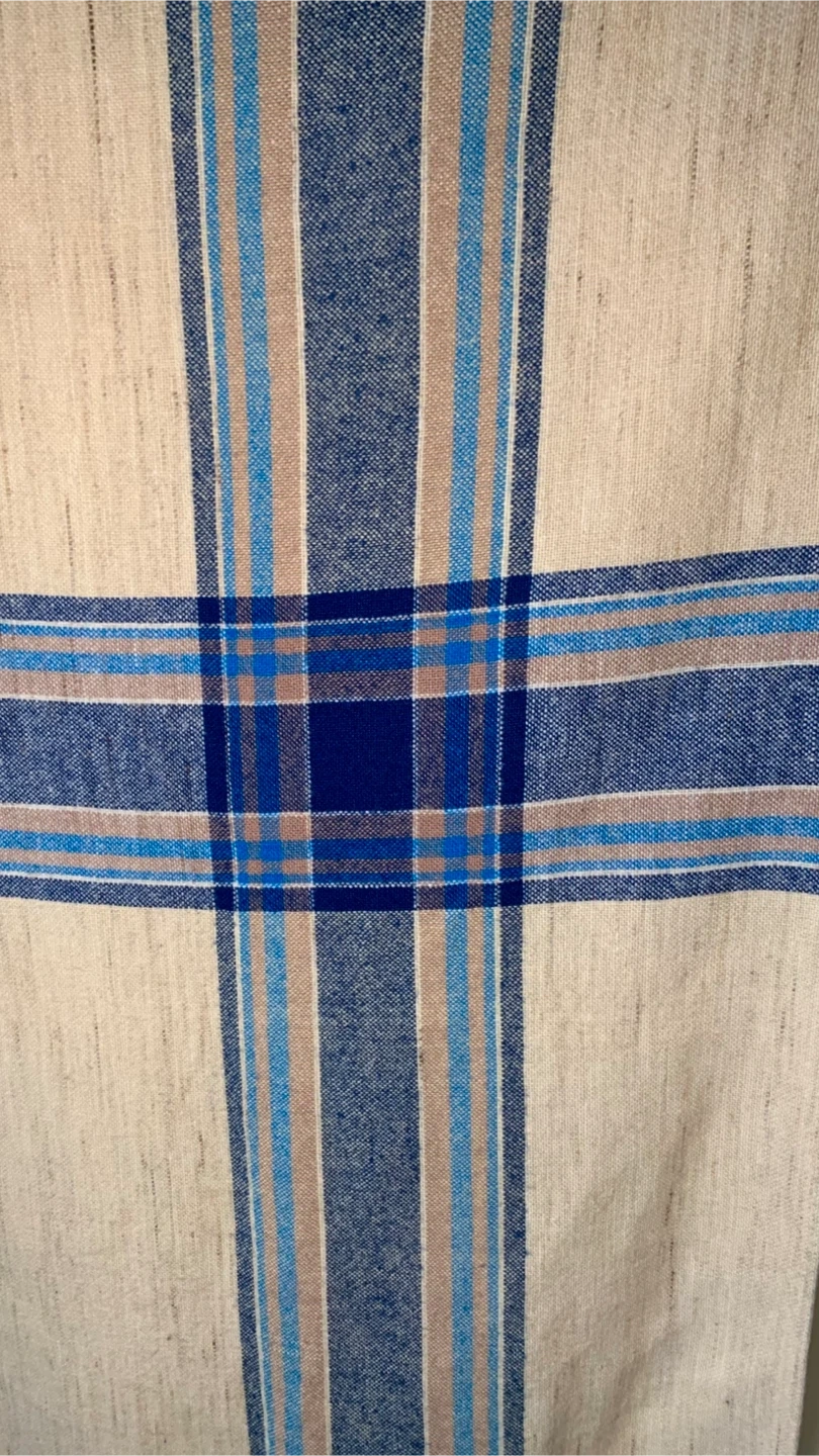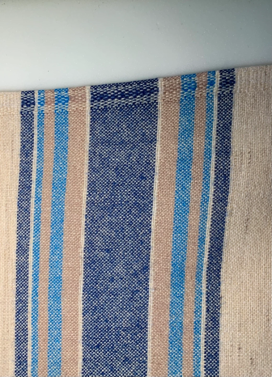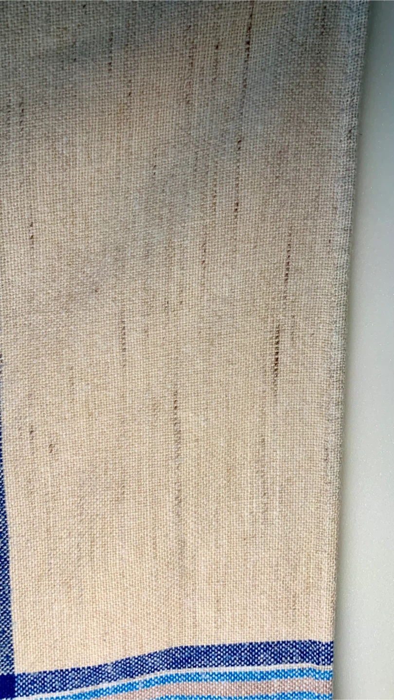 1000+Vintage French tablecloth handcrafted with 100% pure Wool. It is in a brand new condition! Beautifully adding a touch of charm to your dining space! The pattern features a classic French blue and beige pattern design. Vibrant and unique looking this piece is very pleasant to the eye and touch. Real treasure for collectors. 67"x 48"