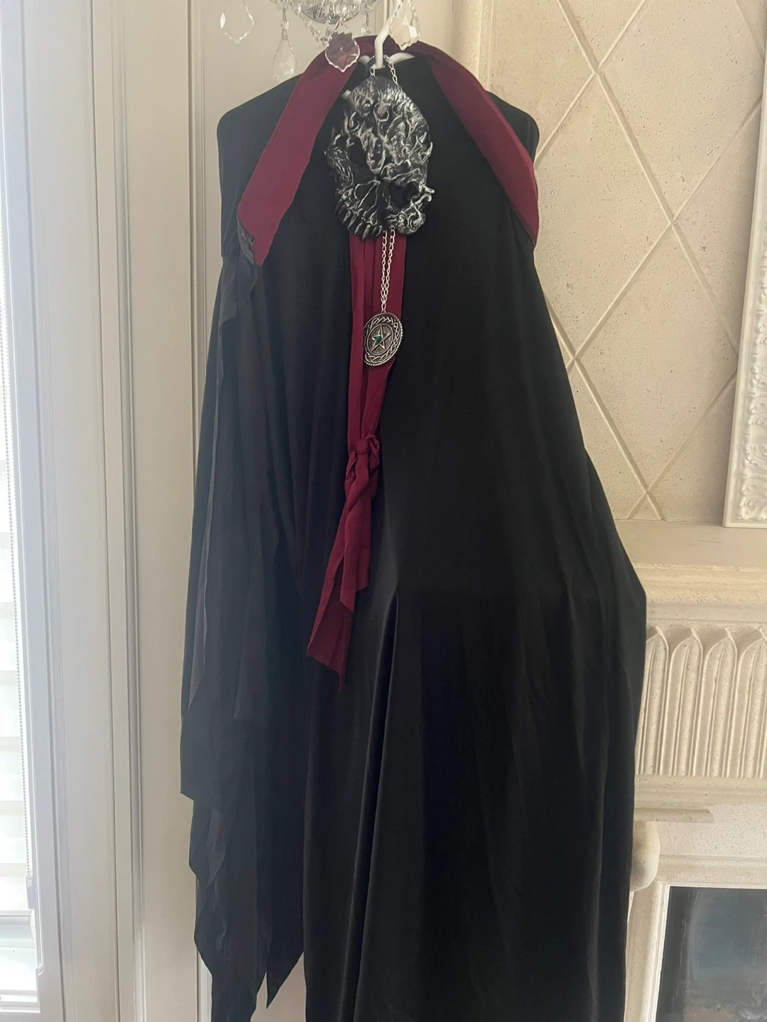238Selling a black and burgundy costume, perfect for Halloween or cosplay! It comes with a decorative mask and necklace to complete the look