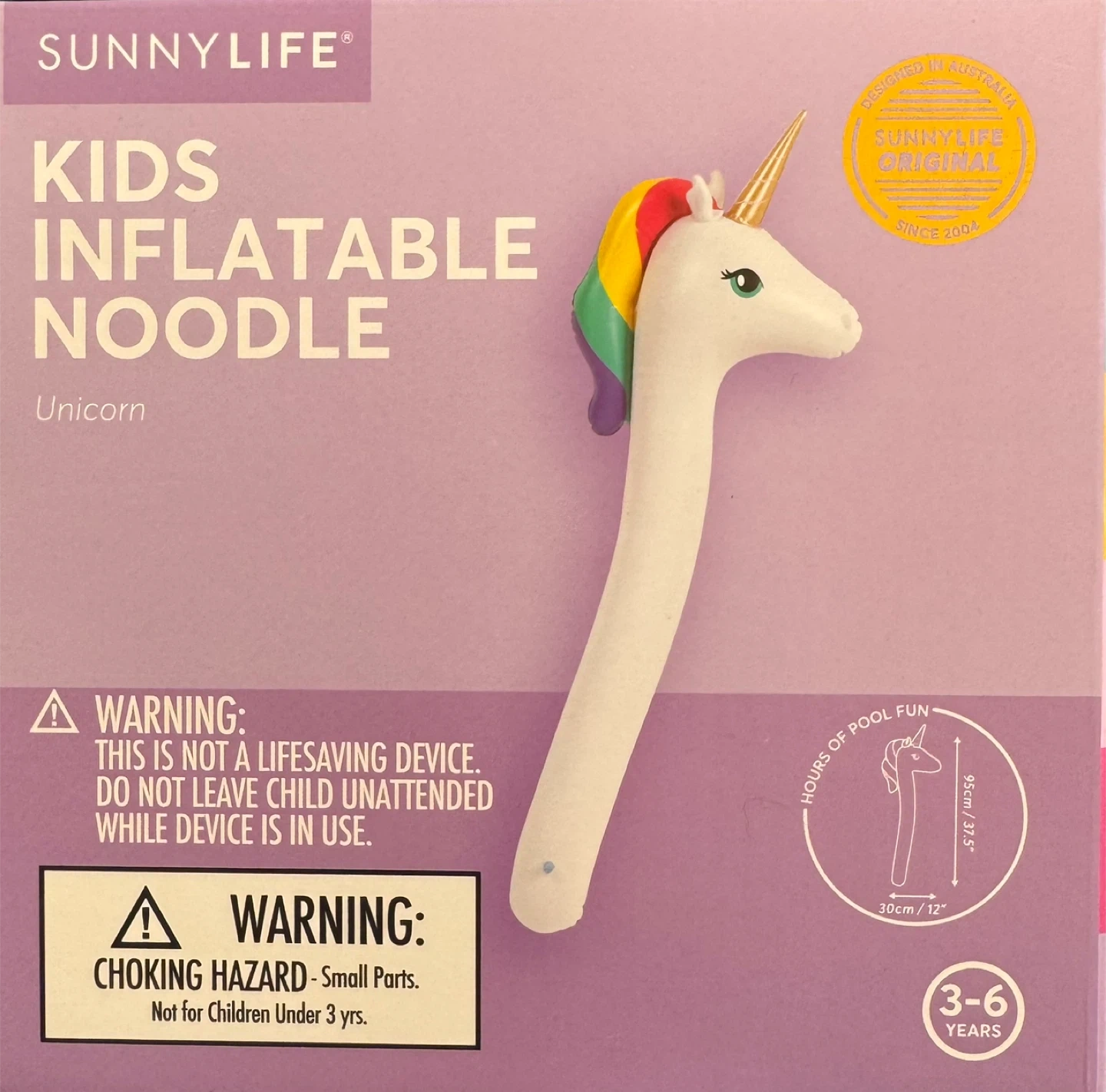 26Sunnylife Kids Inflatable Noodle in a Unicorn design! It's brand new in the box and ready for your little one to enjoy. - Suitable for children aged 3-6 years - Dimensions: 95cm / 37.5" tall, 30cm / 12" wide