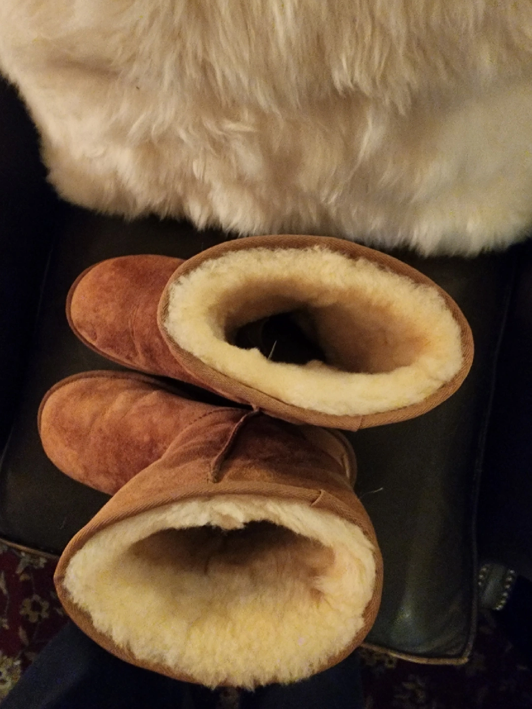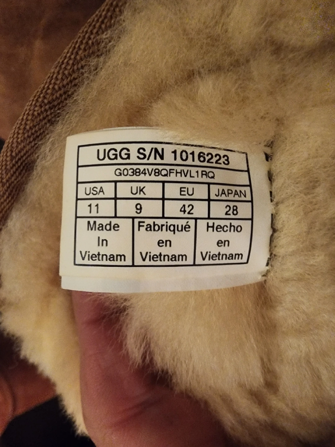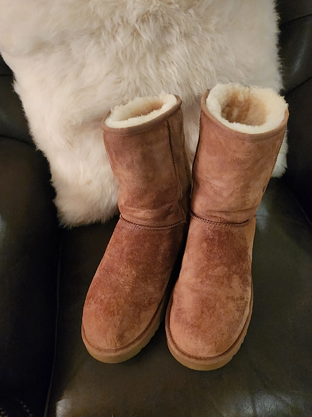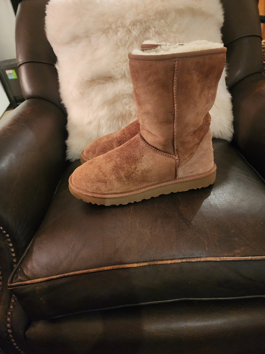 397Selling a pair of UGG Classic Short boots in a warm brown colour! These are super cozy and perfect for the colder weather. The size is a US 11. They're in great condition and ready for a new home! Only worn one time indoors.