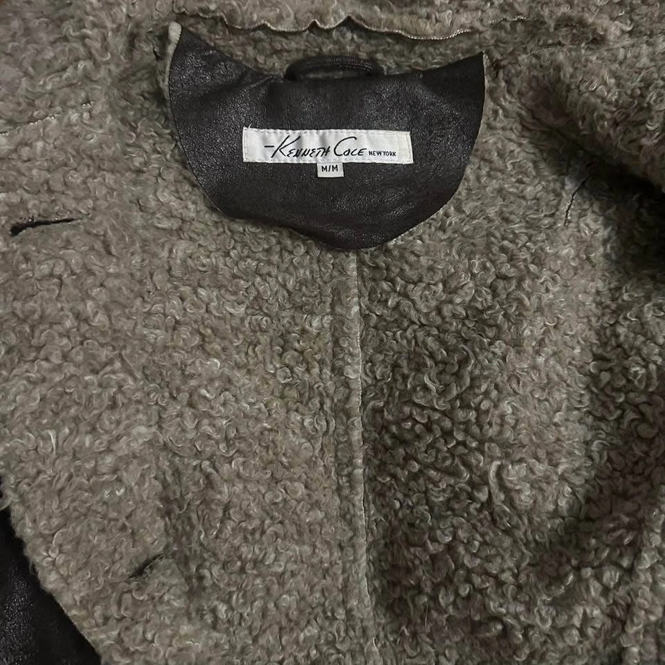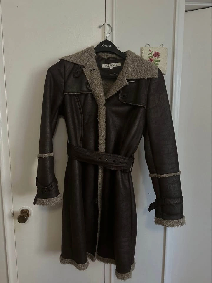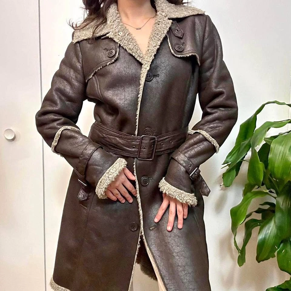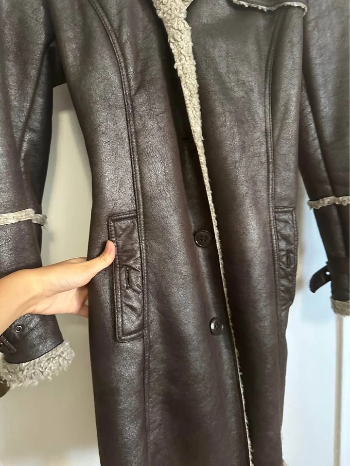 Vintage Brown Faux Leather Sherpa Trim Trench