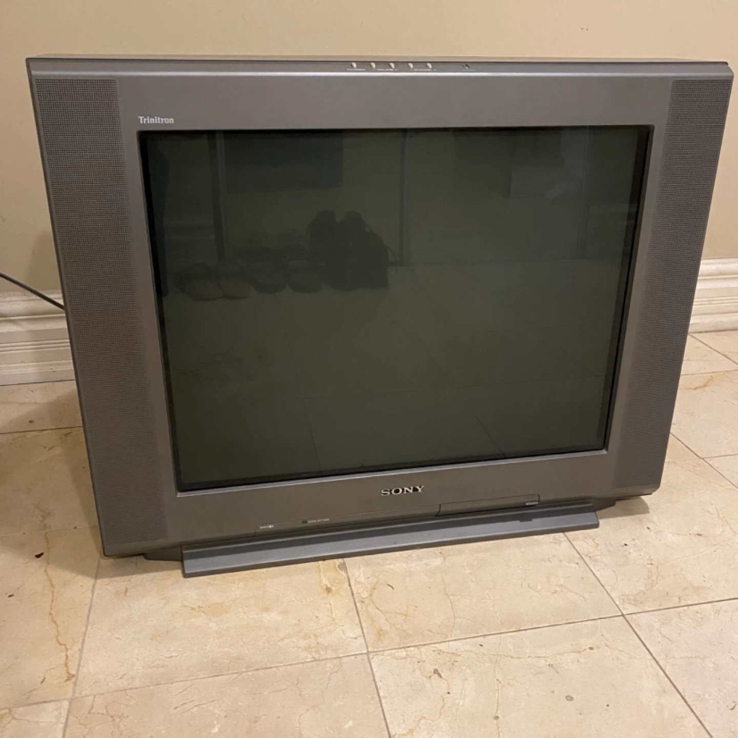 Selling a Sony Trinitron CRT television. It's in good condition and ready for a new home. Perfect for retro gaming or watching classic movies! Height: 60cm. Width: 75.5cm. Depth: 51cm. Screen Diagonal: 68cm. Cash only. 2-person carry. Remote not included.
