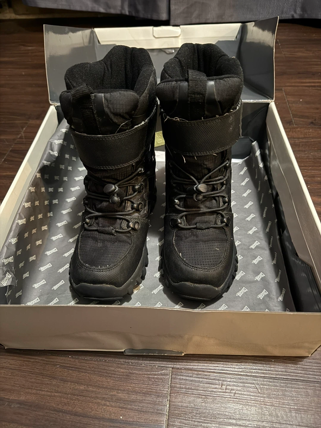 Selling a pair of Cougar Trek Black All Over boots in size 1. They are waterproof and come in the original box. Perfect for keeping your little one's feet warm and dry!