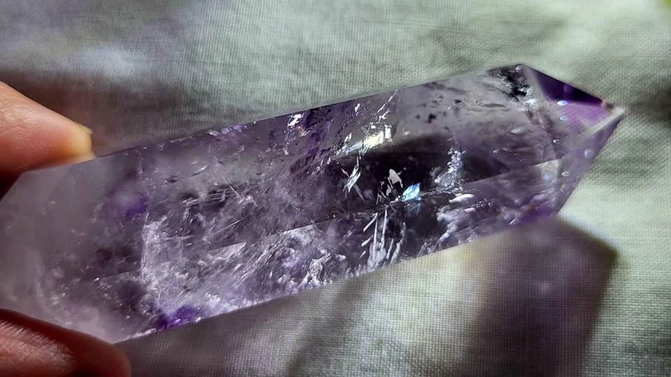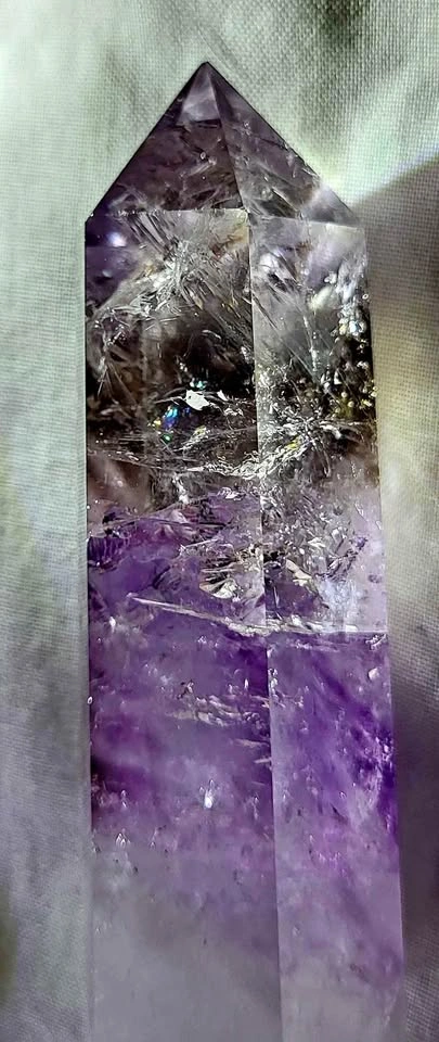Super beautiful veracruz ghost/Phantom Amethyst. These pieces only come from one place, The Los Vigas Mine in Vera Cruz, Mexico. If you are looking for a one of a kind Amethyst, you need to see these in person the colors and rainbows are incredible in natural lighting. These are also double terminated points which make them even highly sought after pieces.