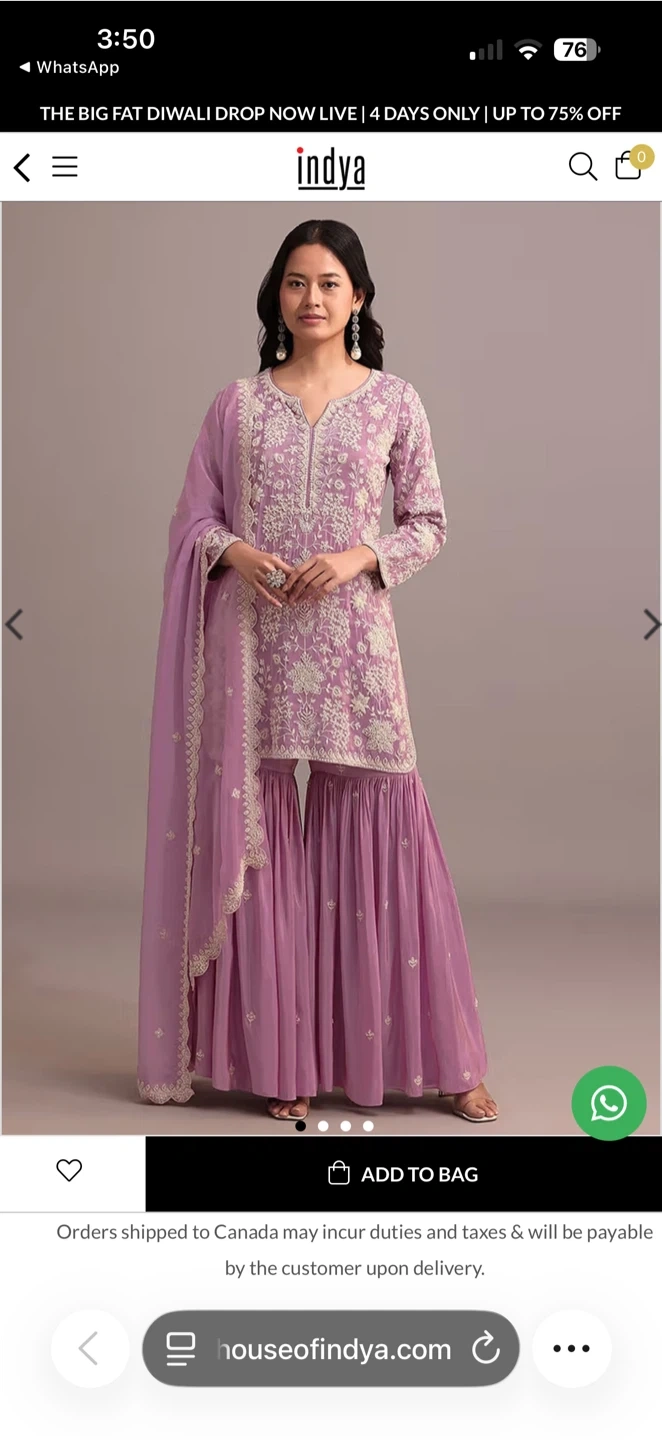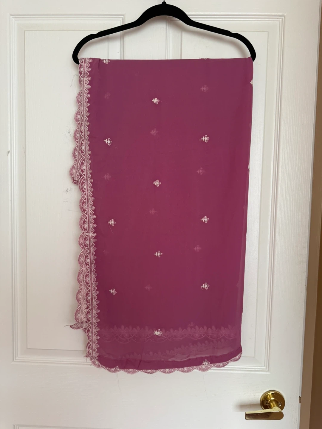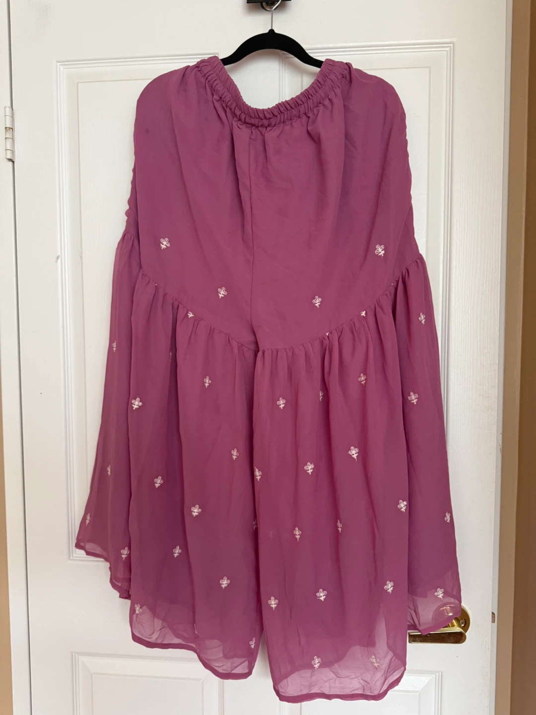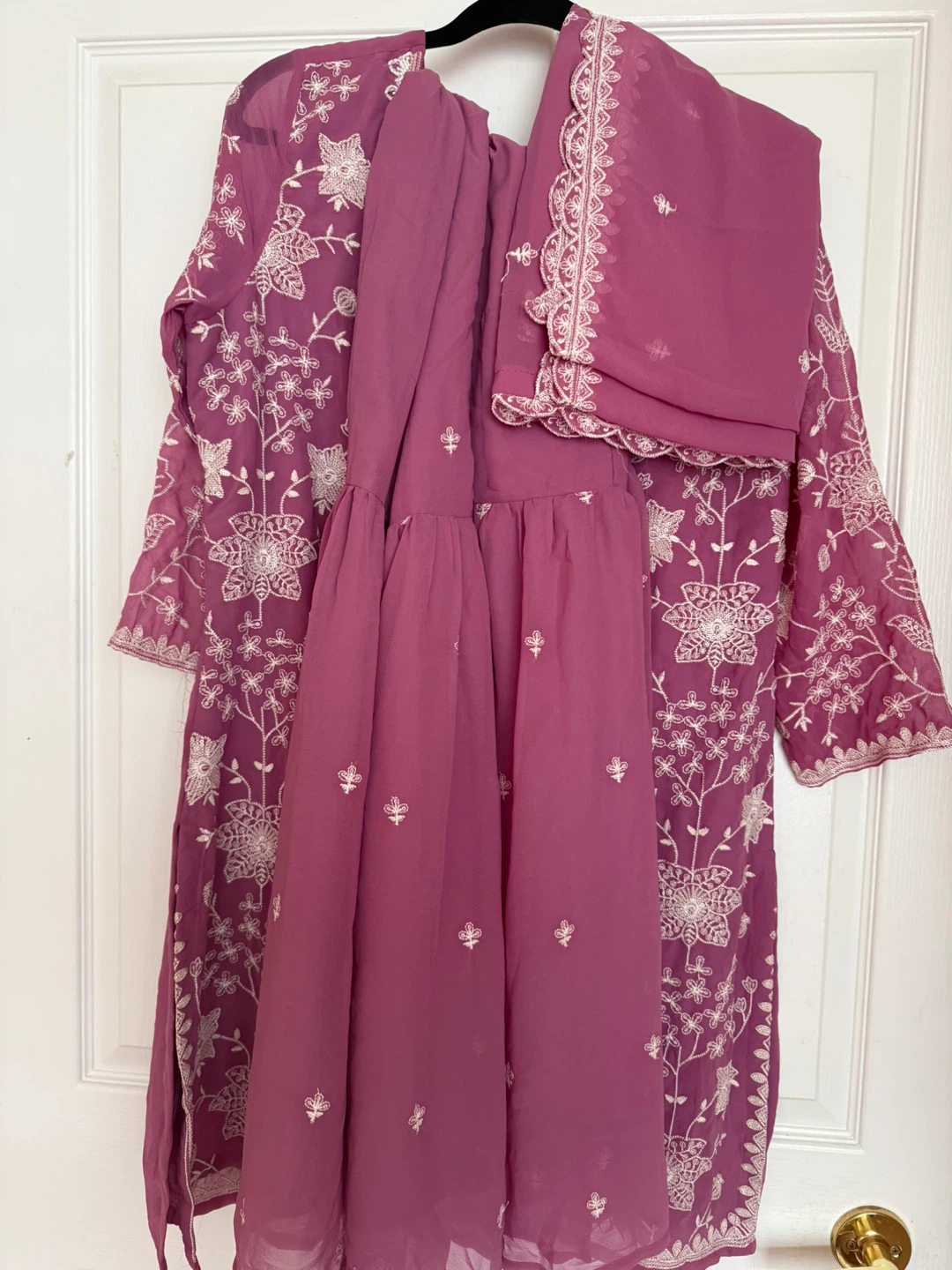 This 3-pieces set features intricate embroidery and comes in a lovely shade of purple.