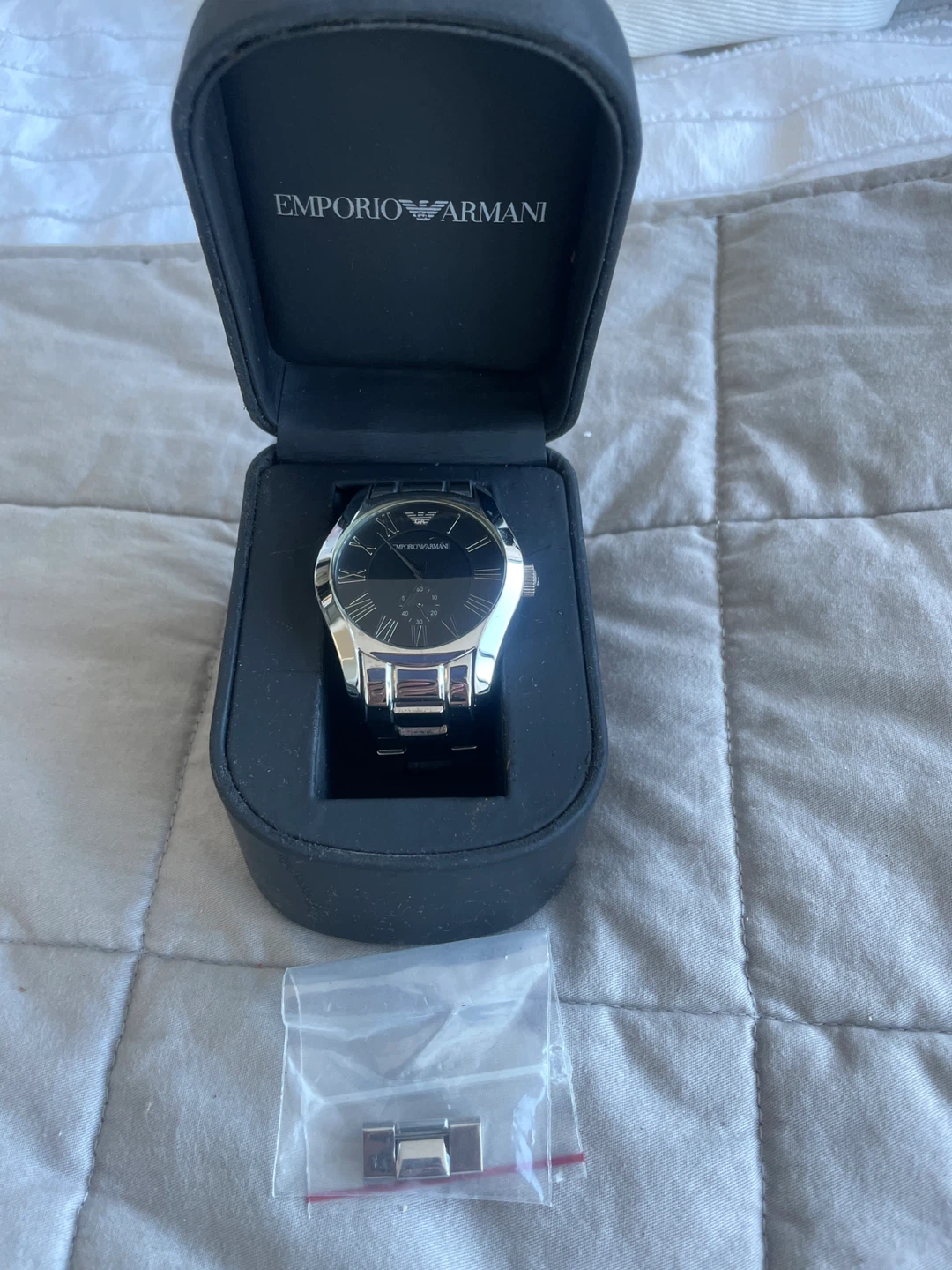 1 / 31 / 3Buy & SellEmporio Armani Men's Watch - SilverEmporio Armani Men's Watch - Silver$75Selling a stylish Emporio Armani men's watch in silver! It comes with its original box and an extra link.BrandEmporio ArmaniWHERE TO MEETCheck LocationView MapSELLERverifiedCJGreenpoint54749 reviews4 chats·1 favorites·124 viewsSEND CHAT TO SELLERHi CJ! I’m interested in your listing.Hi CJ! I’m interested in your listing.Get the Karrot app to chatSign In to chat