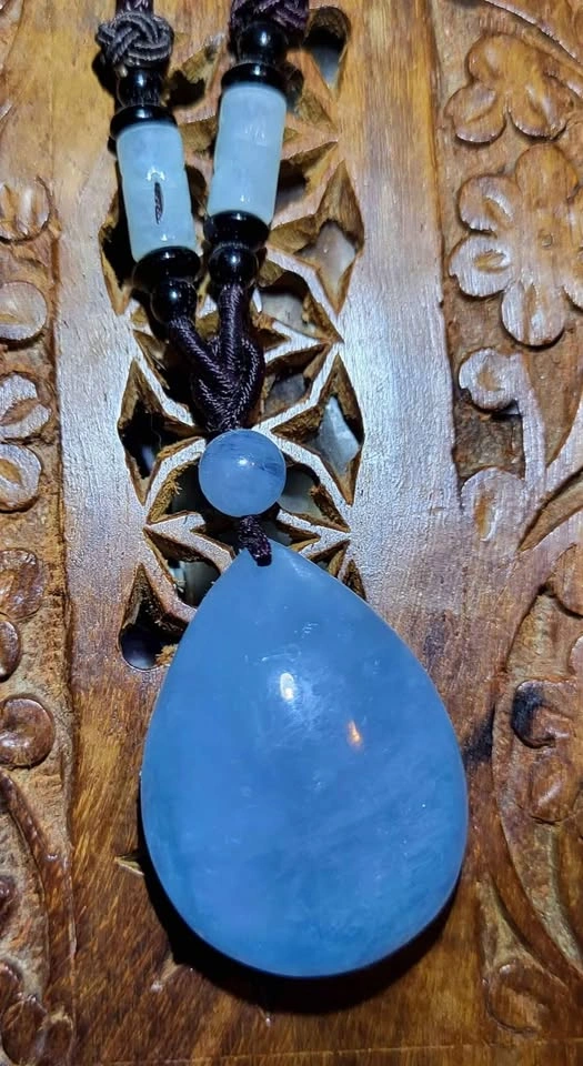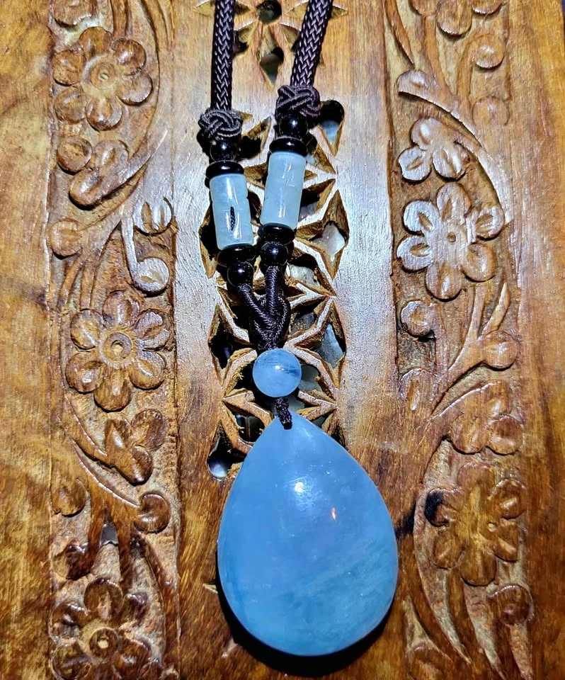 Gorgeous hand cut and polished ocean blue Aquamarine teardrop pendant with little black obsidian round beads and aquamarine barrel beads on the cord. This necklace is 28 inches long. If you'd like dimensions of the aqumarine teardrop please ask.