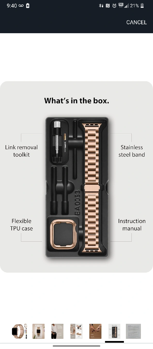 10Looking to switch up your Apple Watch band? This Fullmosa stainless steel iWatch strap is compatible with Apple Watch Series 1-11 46mm models! It comes with a flexible TPU case for added protection. Included in the box: - Stainless steel band - Link removal toolkit - Flexible TPU case - Instruction manual