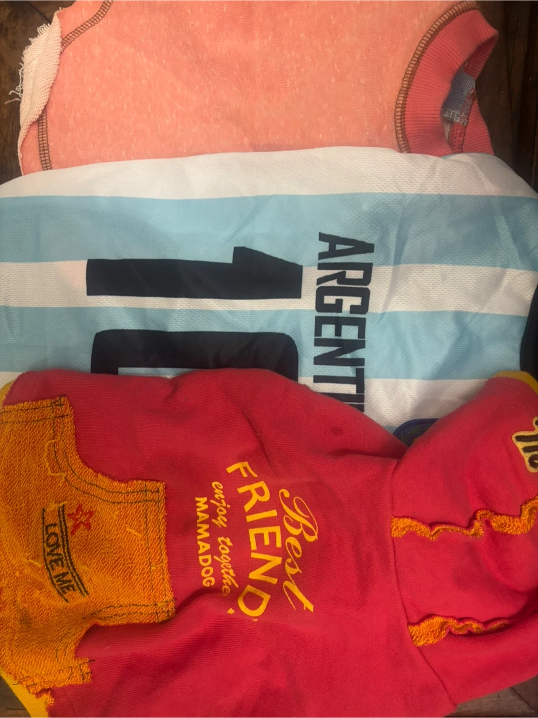 Selling a bundle of dog clothes. Includes a variety of styles and sizes. Perfect for keeping your furry friend warm and stylish! Small breed dog ๐ถ