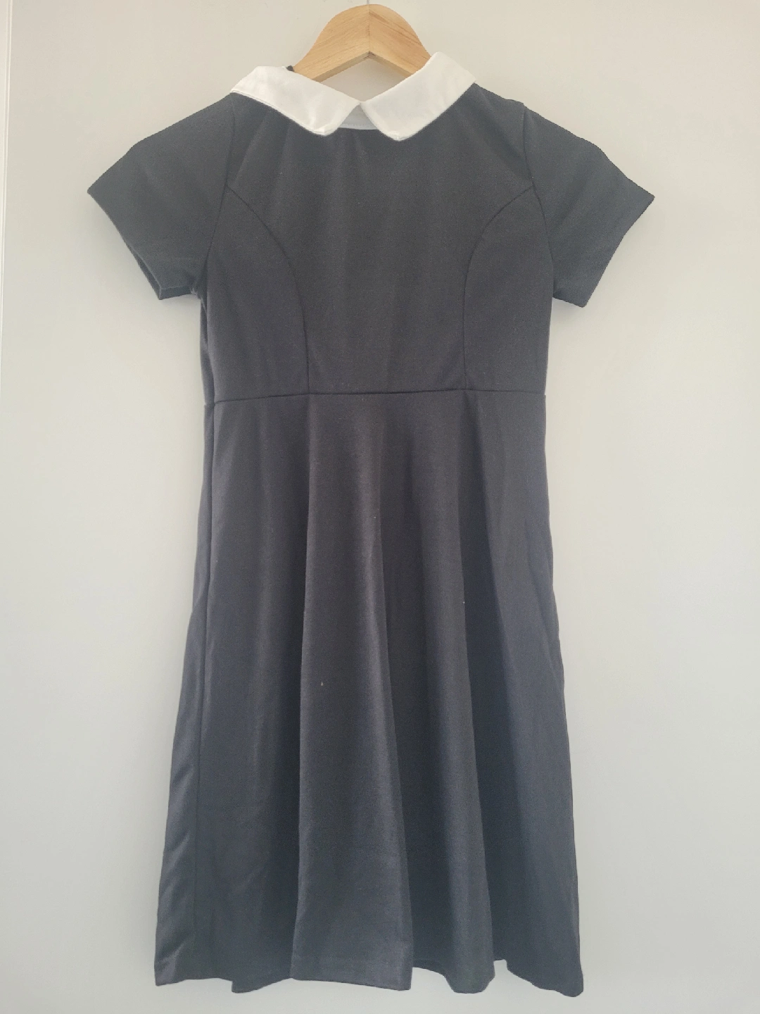 Cute Wednesday Addams black dress! Worn once, in great condition and ready for a new home. Perfect for kids that want to be Wednesday this Halloween. Size L (9-10)