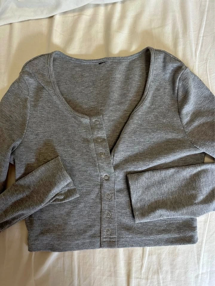 Buy & SellGrey Button Up Cropped Long SleeveGrey Button Up Cropped Long Sleeve$6Super cute cropped top. Barely worn. Size small.WHERE TO MEETCheck LocationView MapSELLERVictoriaMaple191 review0 chats·0 favorites·6 views