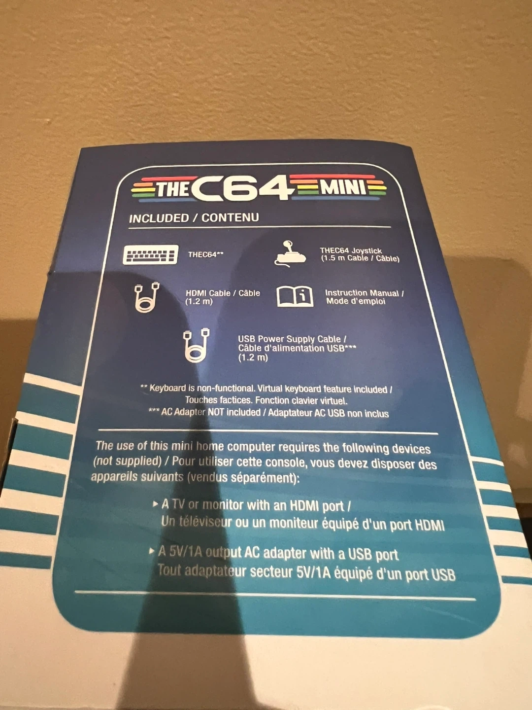 178Selling THEC64 Mini, a blast from the past with 64 classic retro games included! It comes with THEC64 joystick and connects to your TV or monitor with an HDMI cable. The box includes: - THEC64** - THEC64 Joystick (1.5m cable) - HDMI Cable (1.2m) - USB Power Supply Cable (1.2m) - Instruction Manual
