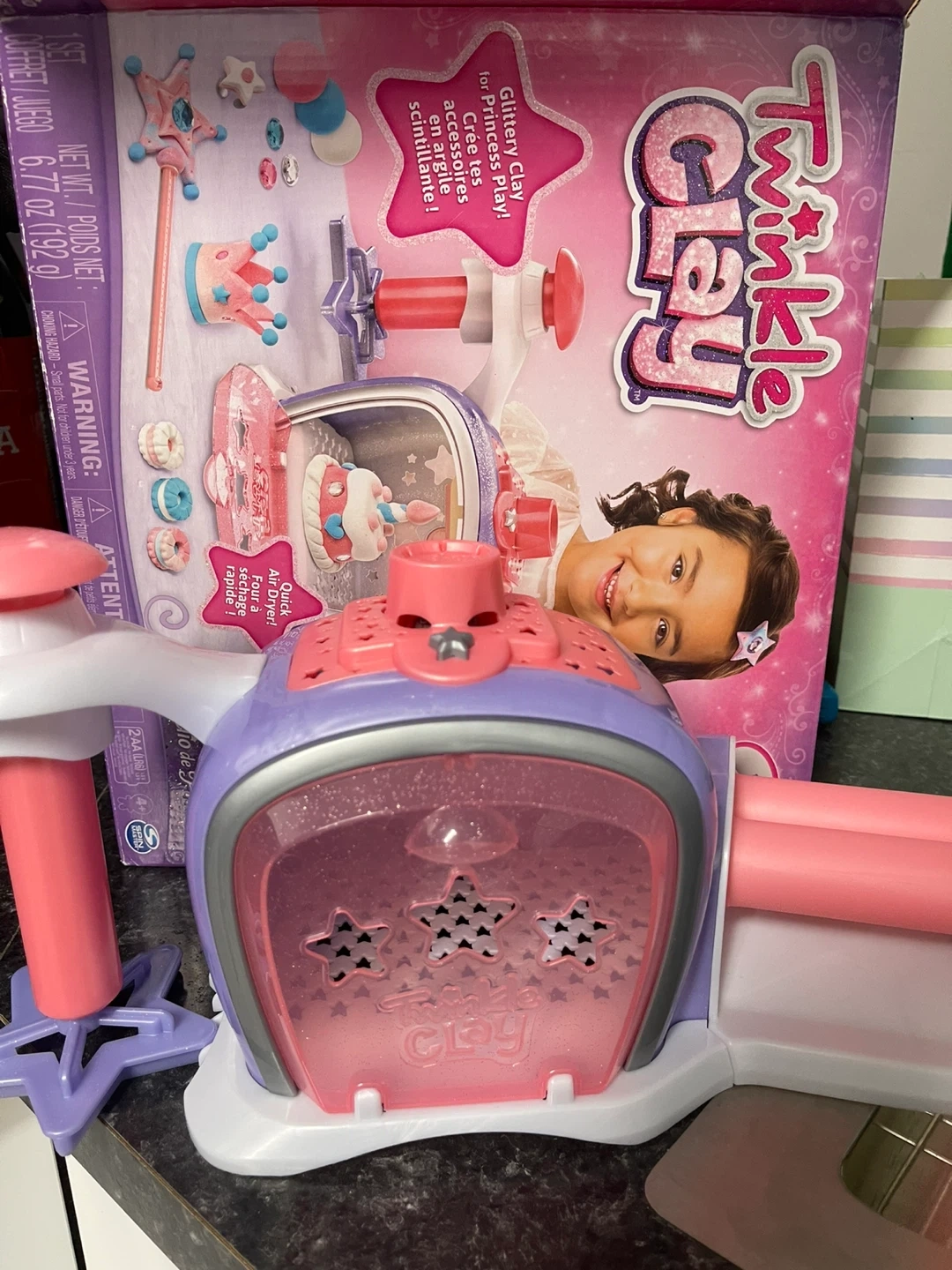 Get creative with this Twinkle Clay Princess Studio! It's a fun dough set for making glittery creations. Includes the Princess Studio and accessories for hours of imaginative play.