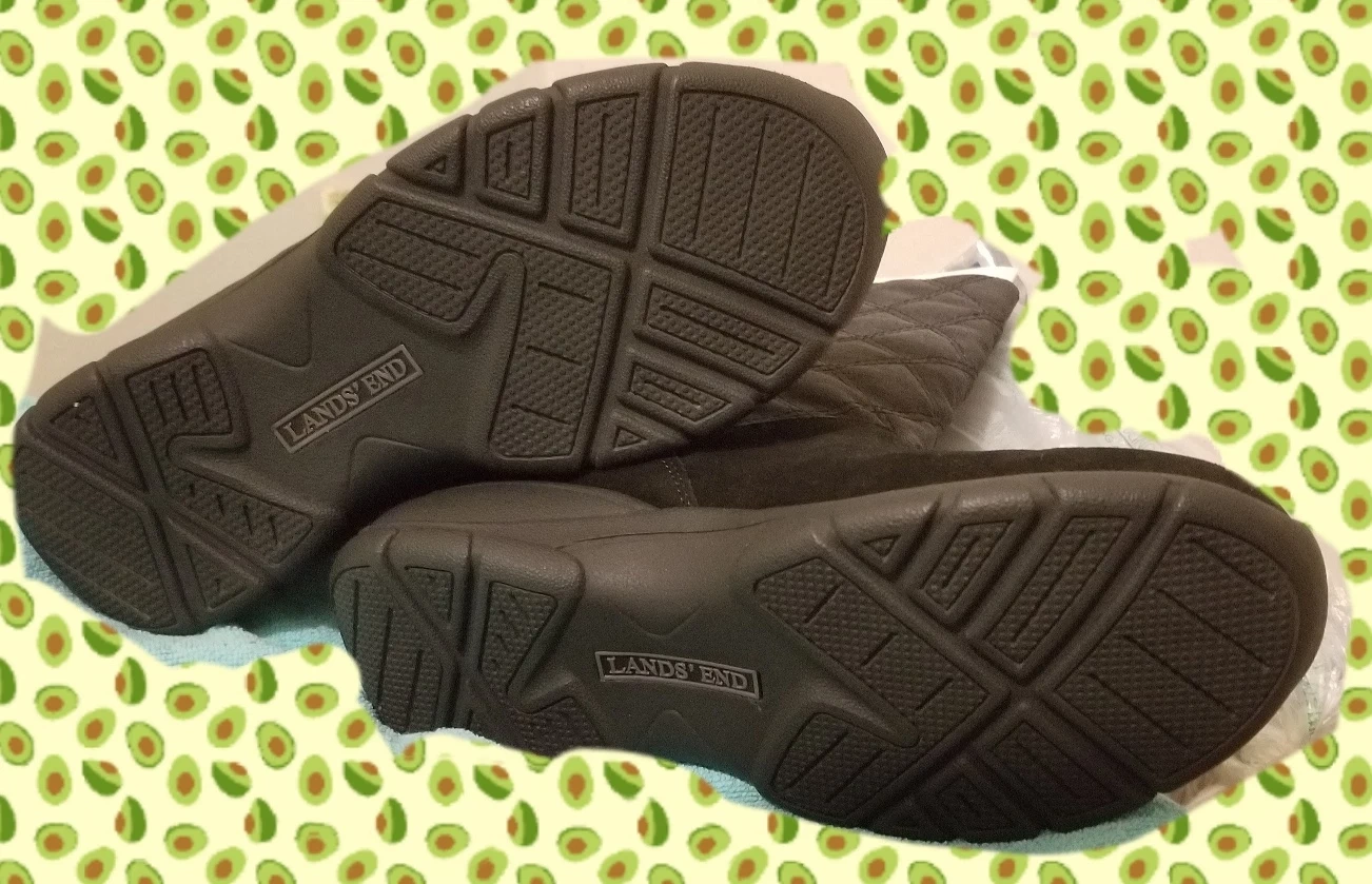 Lands' End black winter boots. They have a zipper and are insulated with Thermolite.
